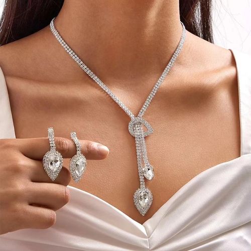 🔥Hot Sale🔥-Clutch Women's Evening Bag Ball Glitter Handbag Wedding Diamond Necklace Earrings Bracelet Set