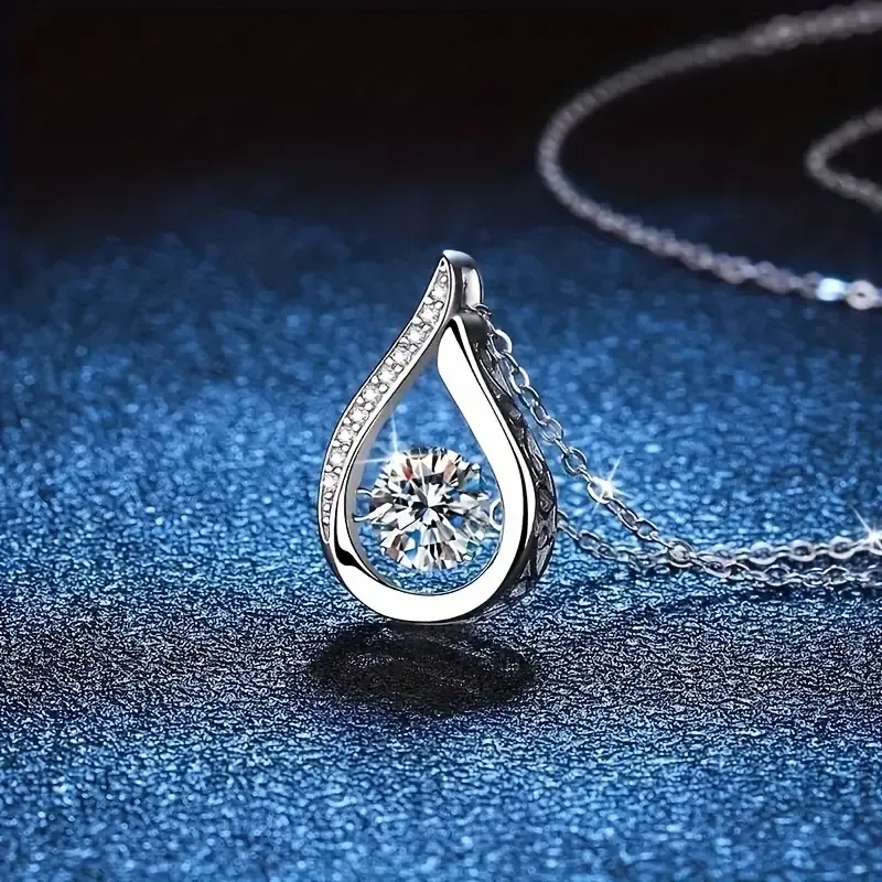 🔥🔥Hot Sale Promotion -Elegant S925 Sterling Silvery Water Drop Pendant Necklace with Cubic Zirconia - Luxurious, Versatile Design for Parties & Anniversary Gifts