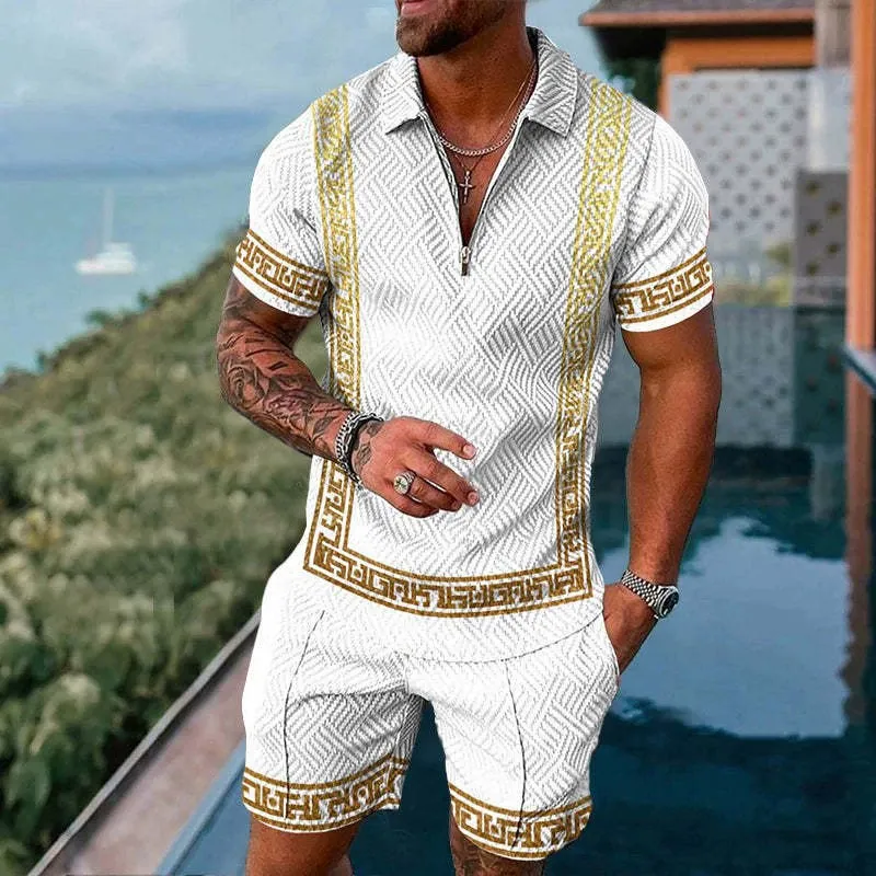 European and American men's new casual contrast color POLO zipper lapel shirt short sleeve suit