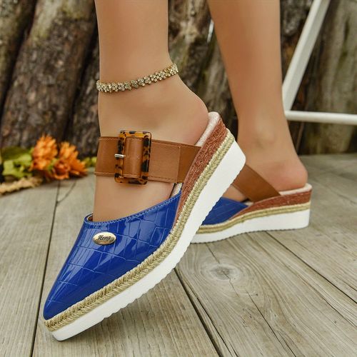🔥2025 HOT SALE -50%🔥Backless wedge sandals with lightweight hemp rope braided toe and belt buckle for women, thick-soled women's shoes