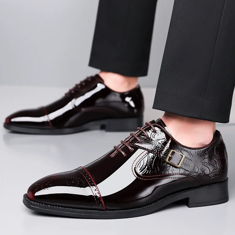 Men's Casual Shoes Youthful Gentlemen's Suit Shoes Trendy Leather Shoes Business Lace-Up Pointed-Toe Anti-Slip