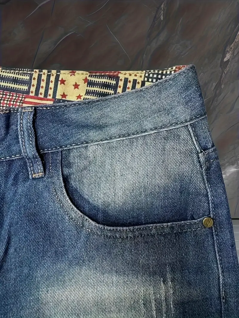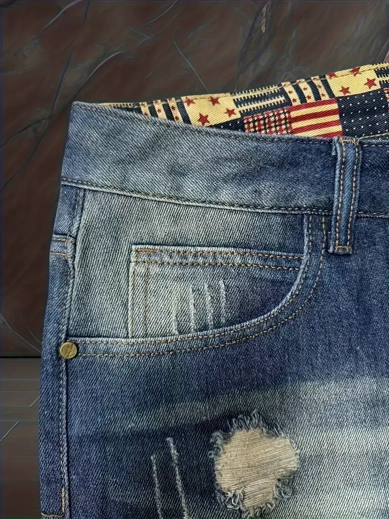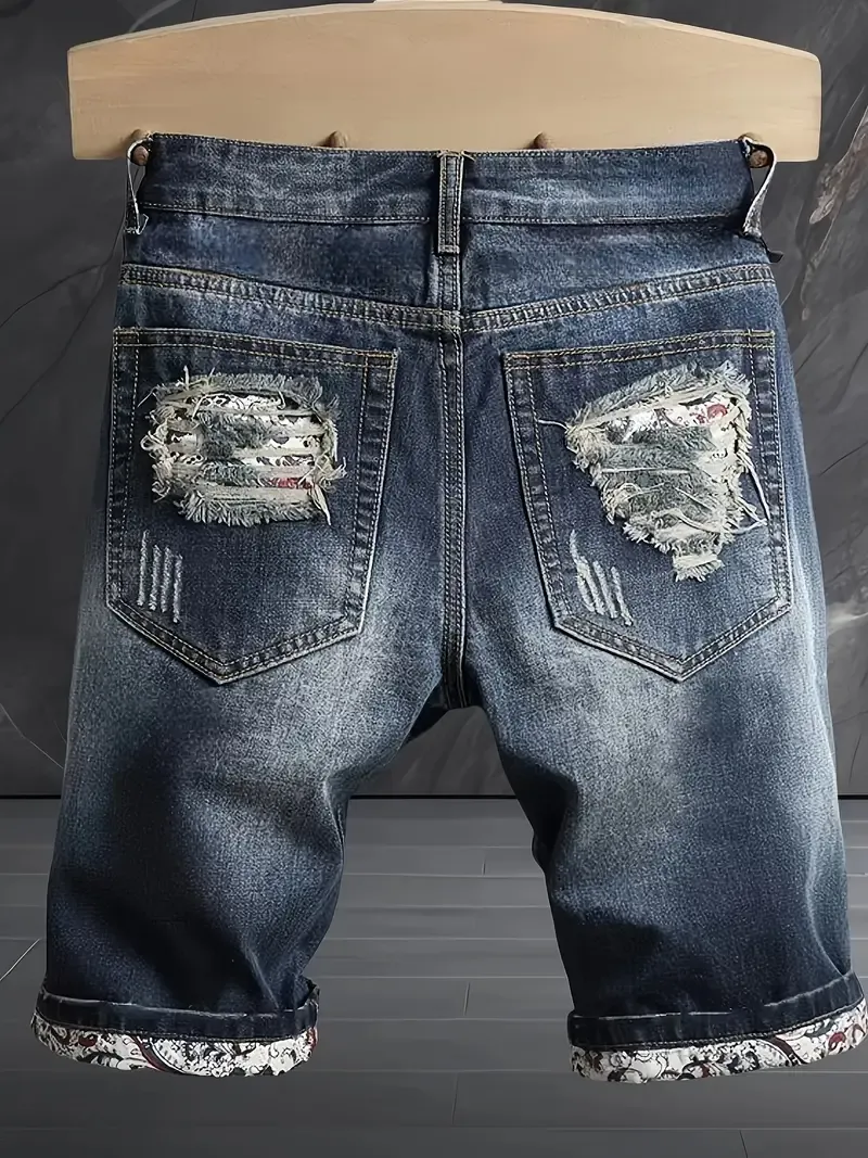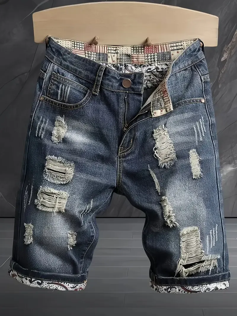 🔥BIG SALE 50%🔥Men's Distressed Denim Shorts, Knee Length Jorts With Ripped Design & Patterned Hem