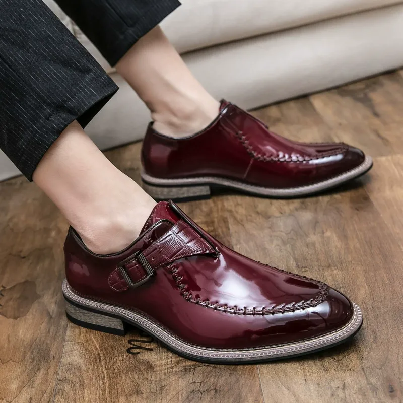 Men's Fashion Shoes with Wooden Soles and Glossy Leather Upper