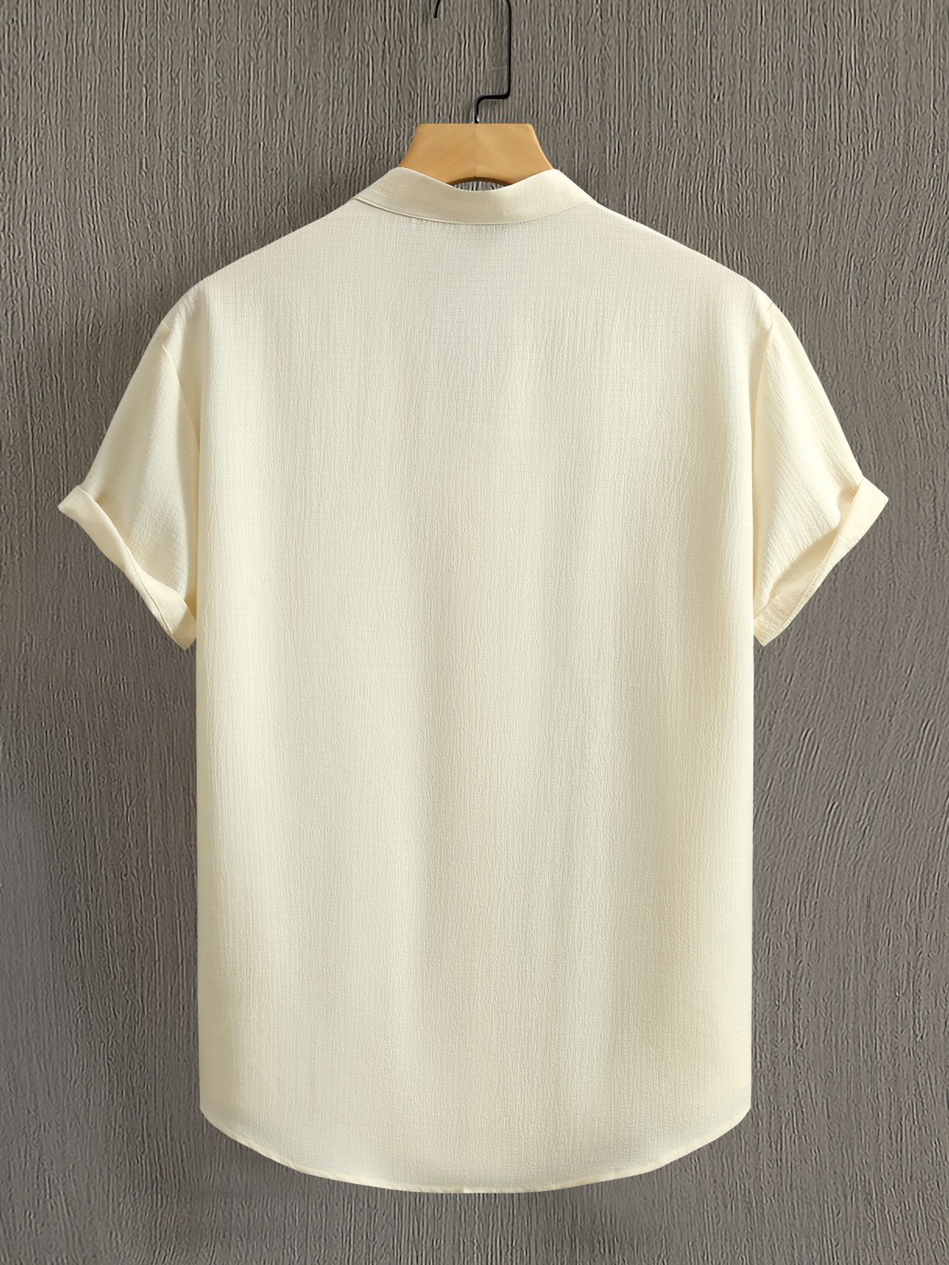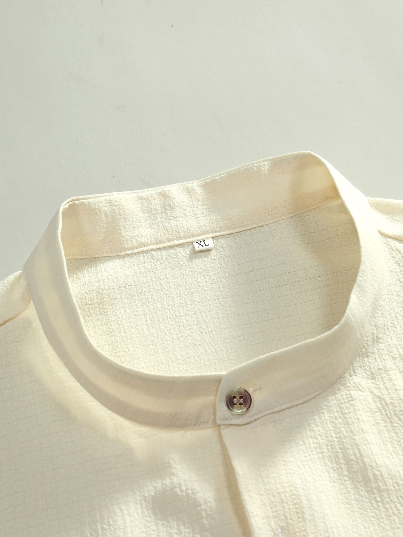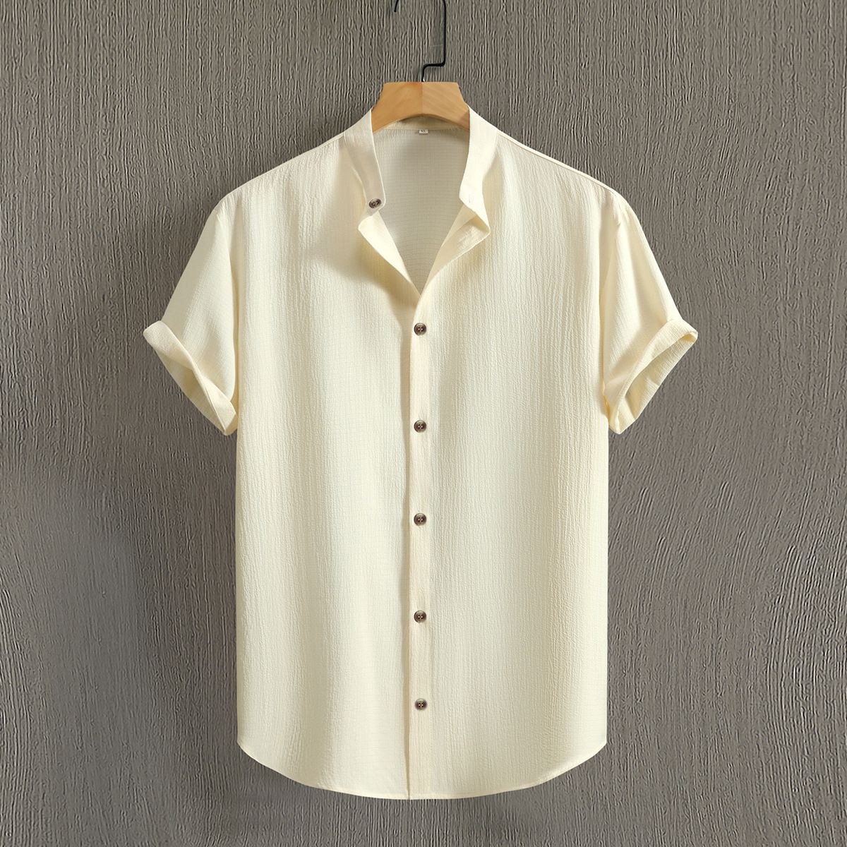 🔥2025 HOT SALE -50%🔥Men's shirt solid color stand collar cardigan casual tops summer new cotton and linen short-sleeved men's shirt