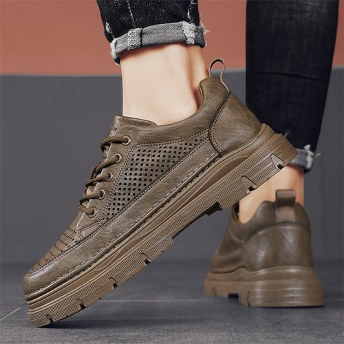 New breathable hollow men's business casual leather shoes black British style