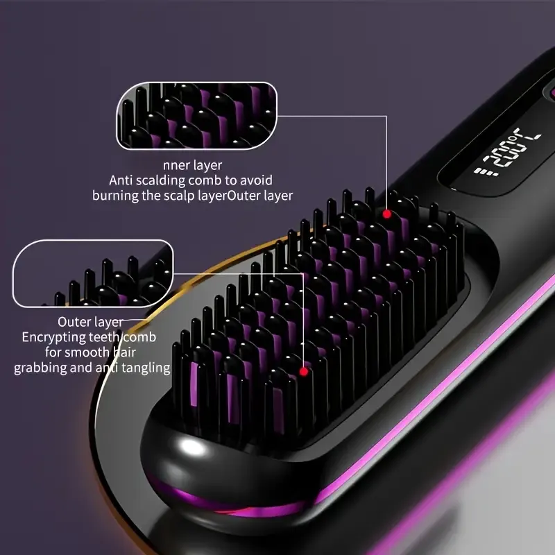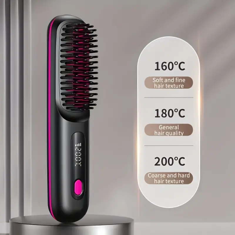 🔥🔥Hot Sale🔥🔥Portable Wireless Hair Straightener Comb - USB Charging, 3-speed Temperature Control, Negative Ion Technology, Long-lasting Luster,
