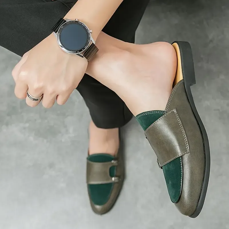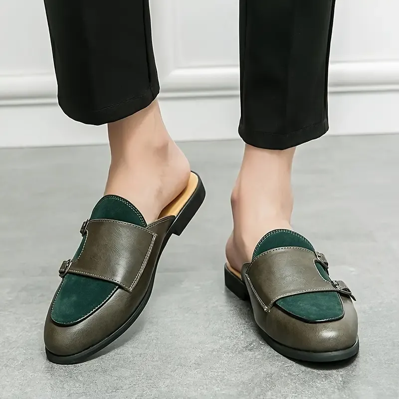 🔥🔥Hot Sale Promotion - Men's Trendy Color Block Punk Style Mule Shoes, Comfy Non Slip Rubber Sole Durable Slippers, Men's Summer Daily Footwear