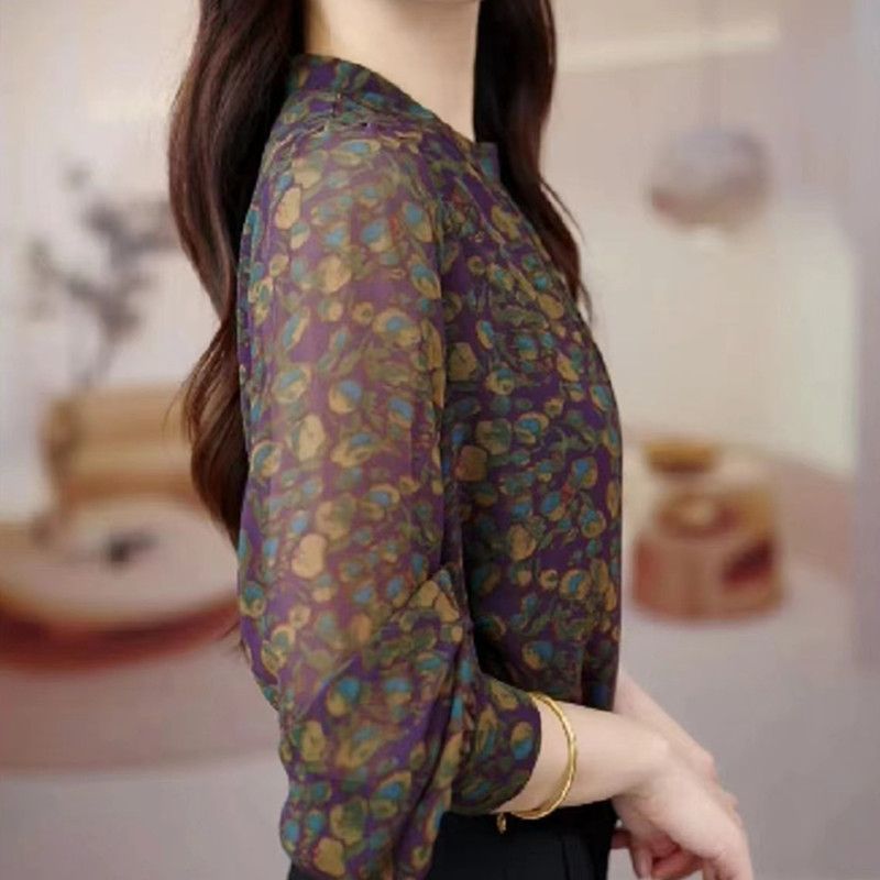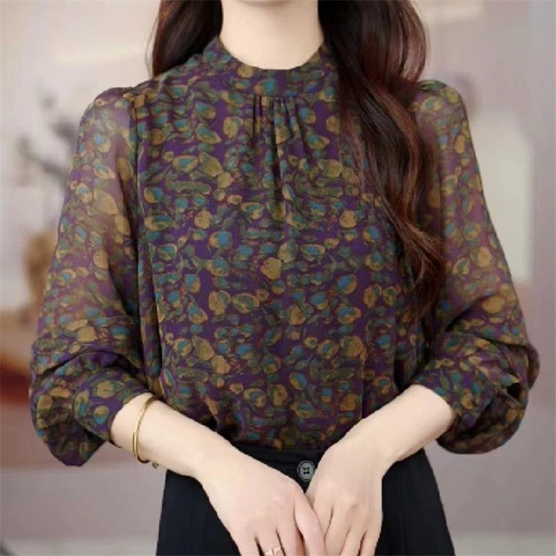 🔥2025 HOT SALE -50%🔥Silk shirt for women with long sleeves, 2025 summer new style, retro fashion, loose fit, versatile, round neck, short top.