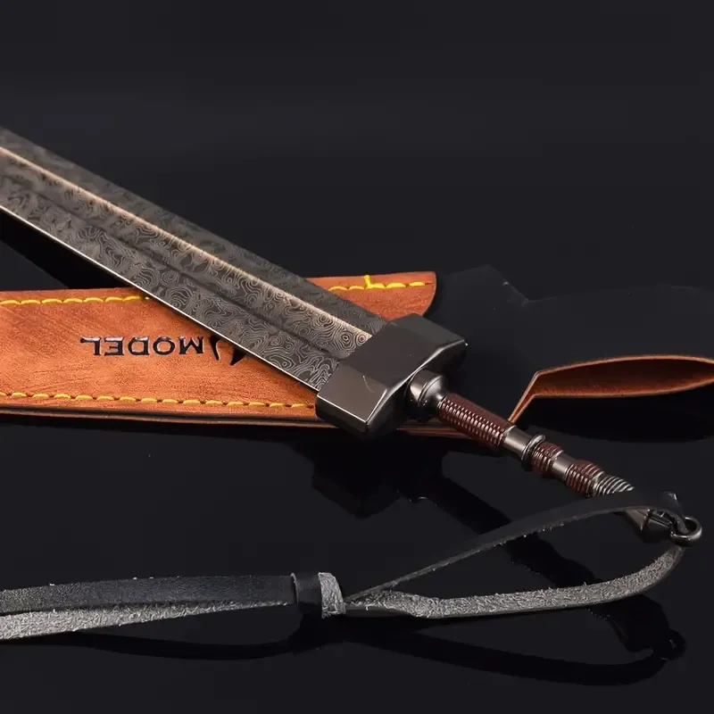 🔥🔥Hot Sale Promotion -1pc Exquisite Damascus Steel Pattern Giant Sword - Full Metal Model Hand Figure with Intricate Details and Realistic Design