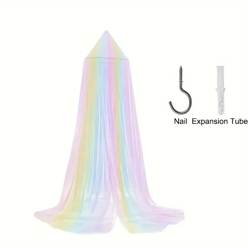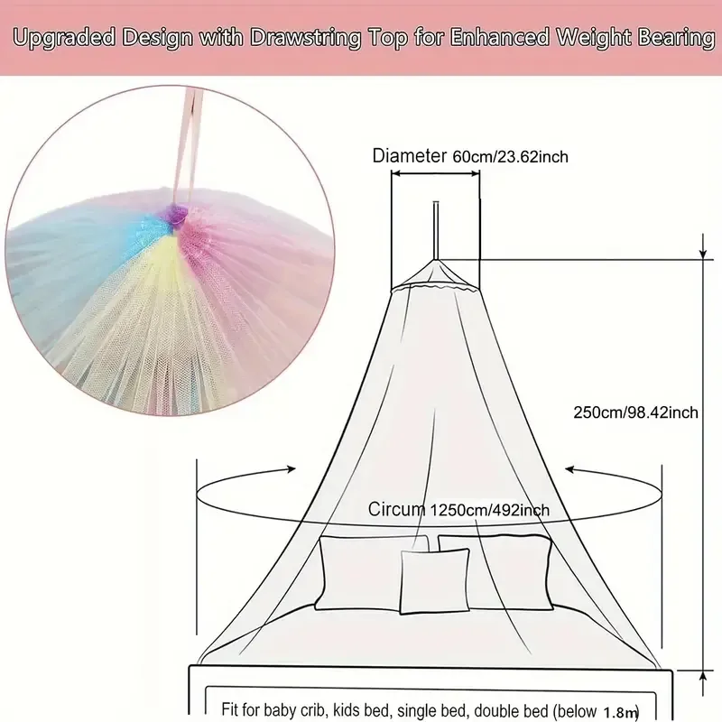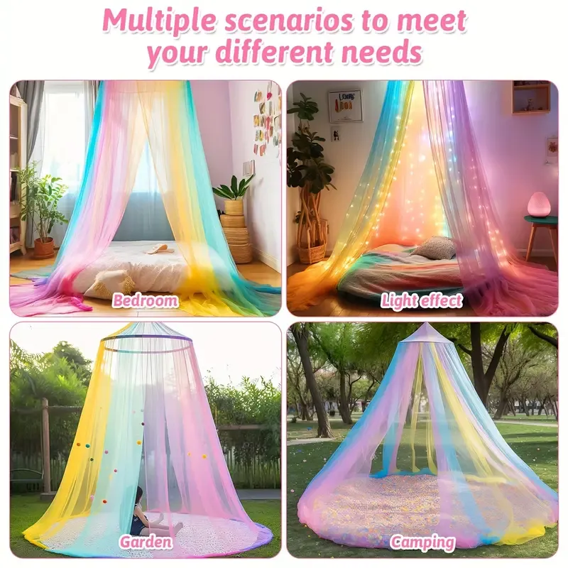 🔥LAST DAY BIG SALE 50%🔥Whimsical Rainbow Bed Canopy - Colorful Princess Fairy Tent with Pink Dome, Unicorn Themed Party Decoration, Cozy Reading Corner, Soft Mesh Netting, Easy Assembly, and Portable DesignLights