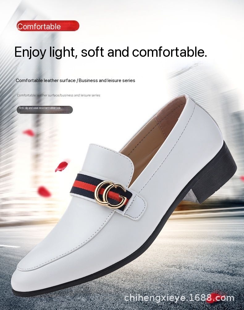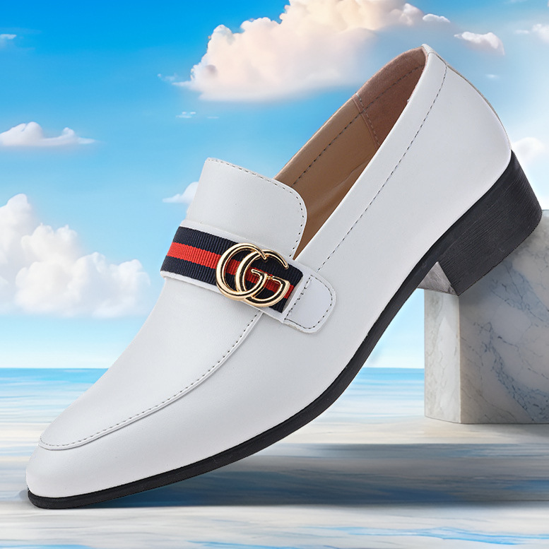 British style pointed-toe business leather slip-on casual breathable men's shoes horsebit buckle loafers high-end handsome trendy leather shoes
