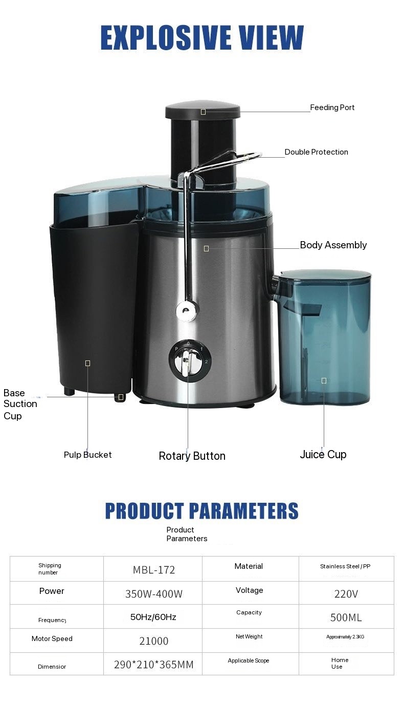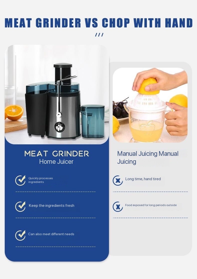 Cross-border multi-functional electric stainless steel juicer for kitchen use, large capacity, milk tea maker, fruit separator, blender, household use.