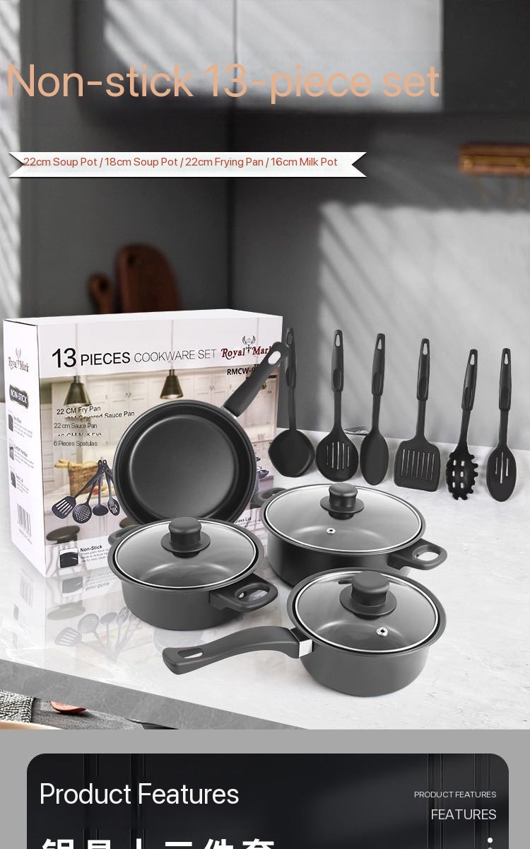 Hot-selling 13-piece cookware set, spatula, non-stick saucepan, milk pan, frying pan, cross-border Maifan stone pot multi-piece cookware set