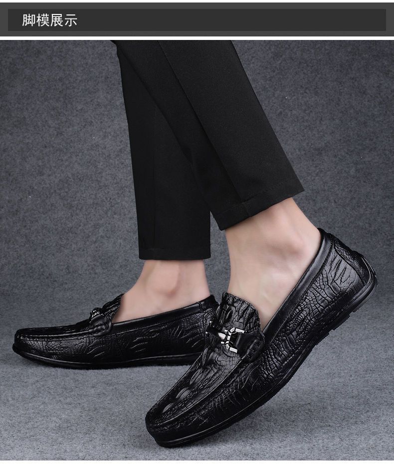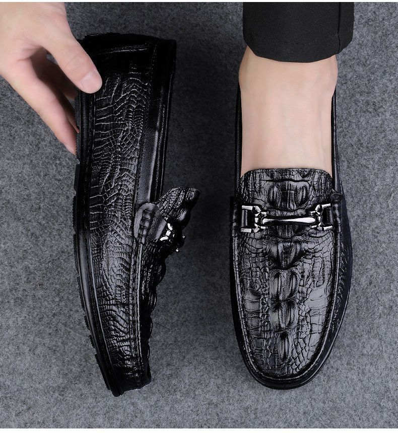 Men's leather shoes, 2025 new style, textured crocodile pattern loafers, business casual men's shoes, versatile soft-soled men's shoes.