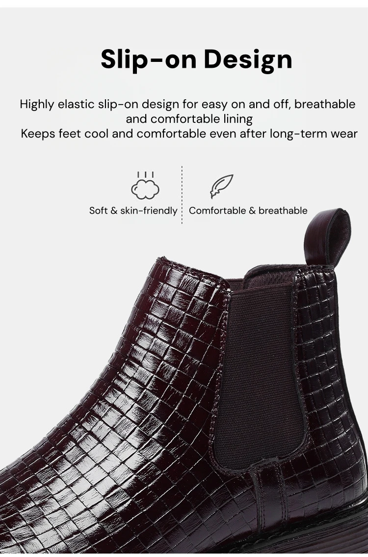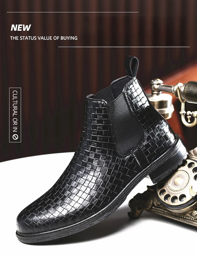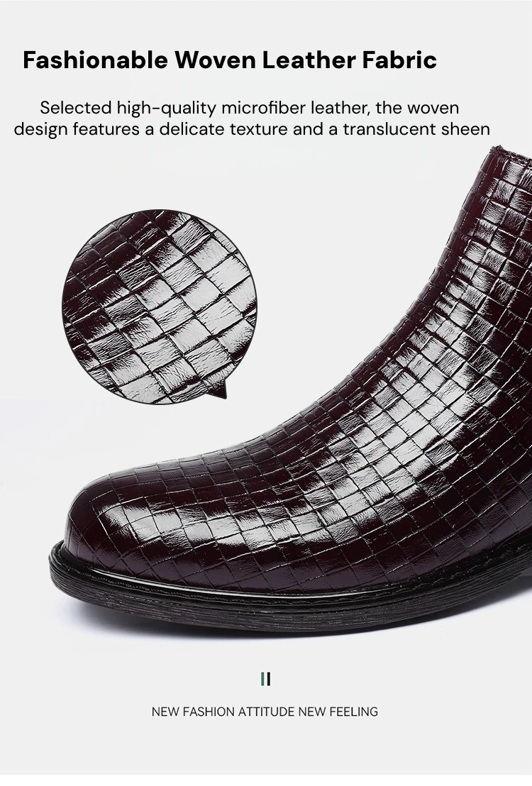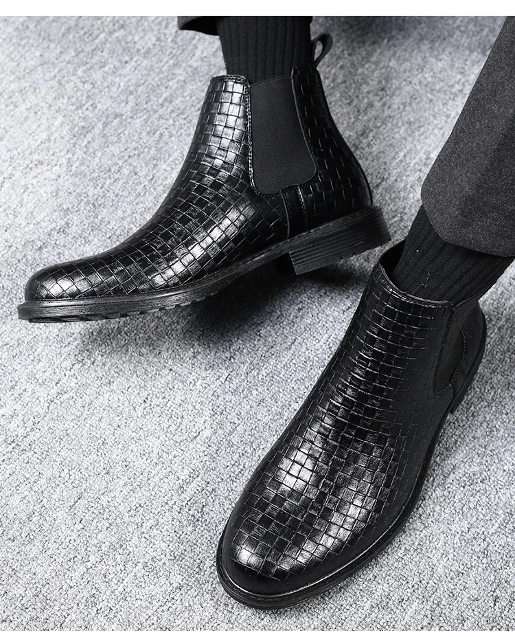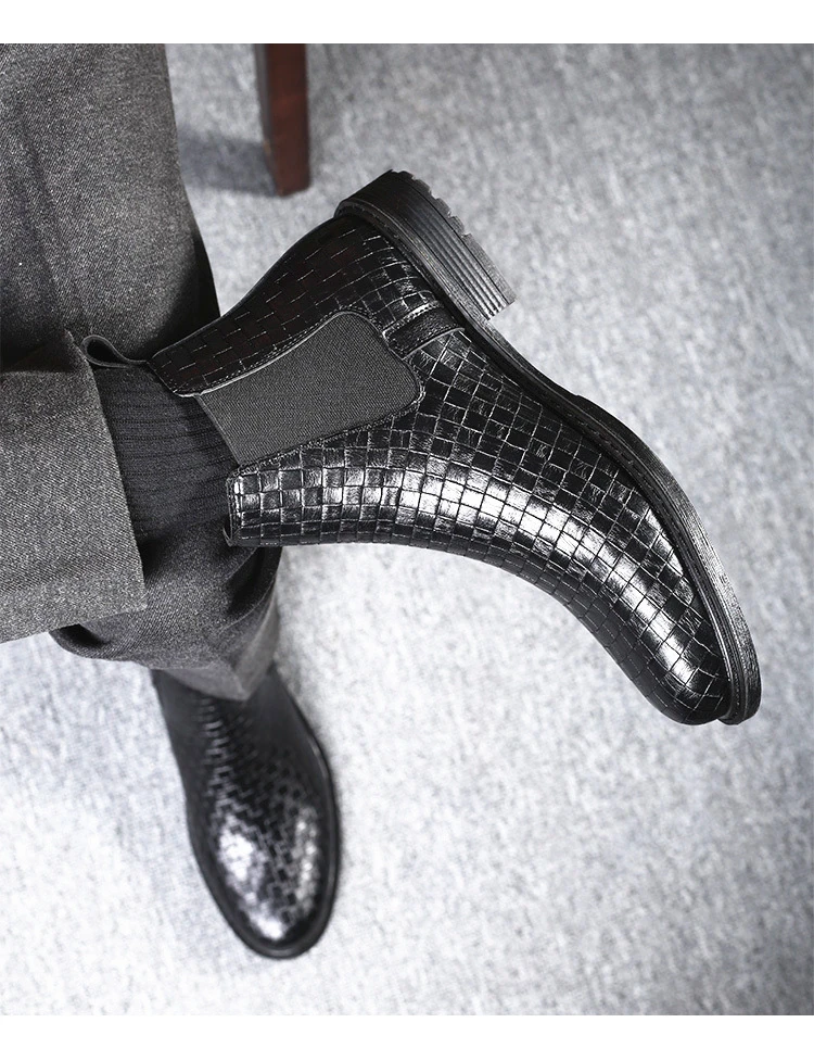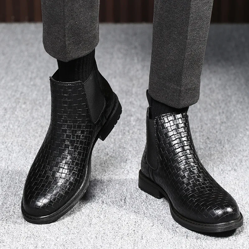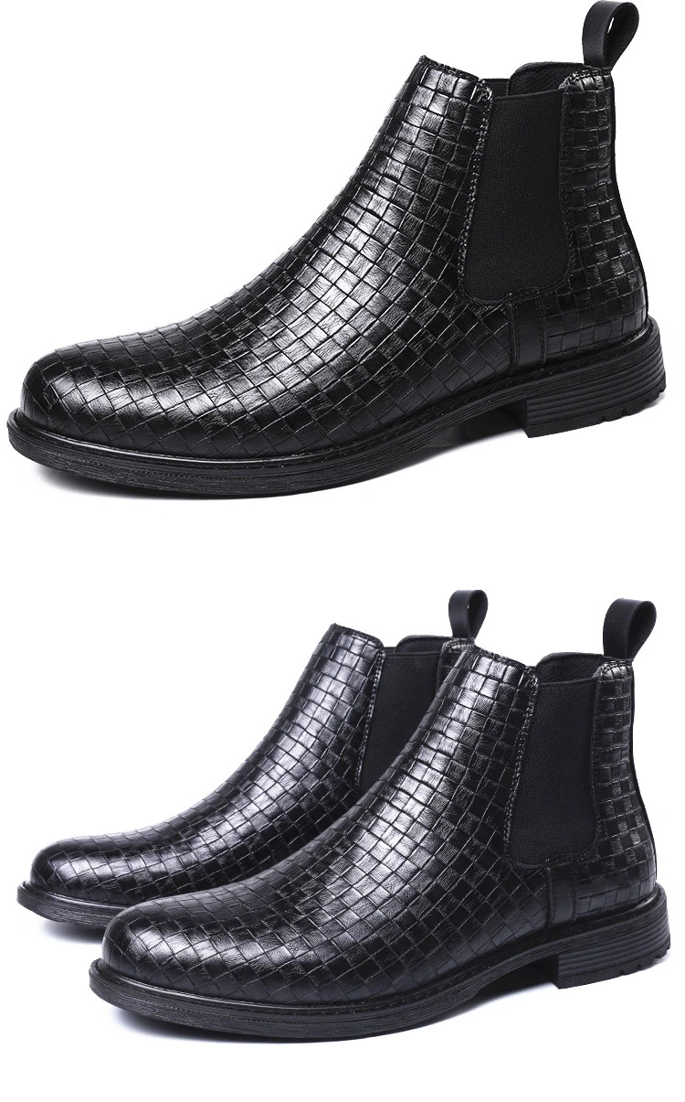 Men's woven texture Chelsea casual Martin boots, glossy high elasticity men's boots