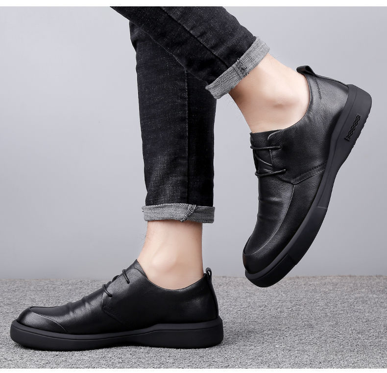 Trendy and versatile British style business casual men's shoes, soft leather shoes with soft soles.