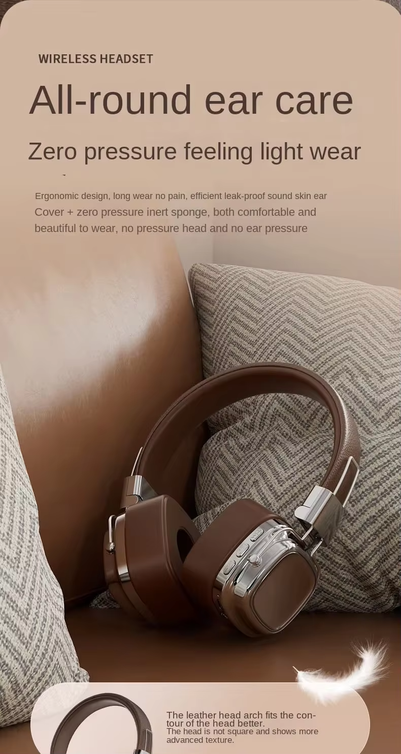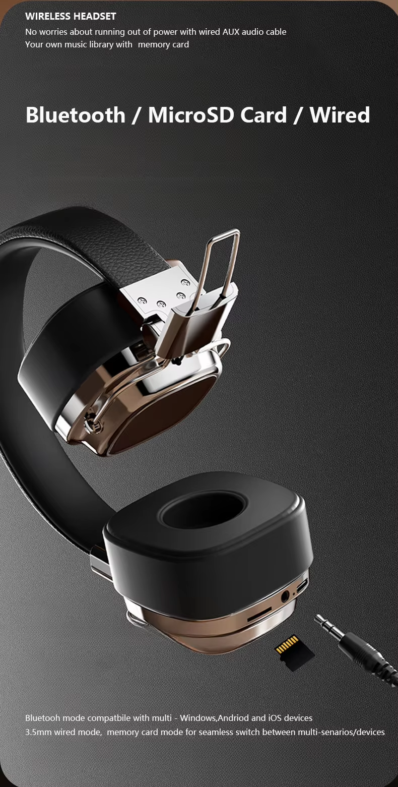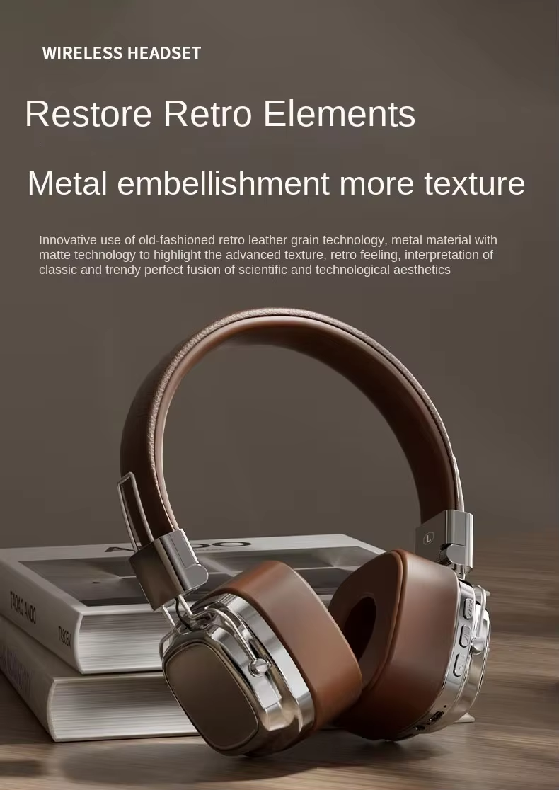 Wireless 5, 4 Headphones, Vintage-Style, Newly Upgraded, Long Battery Life, Ultra-Lightweight, Comfortable to Wear, Push Button Control,