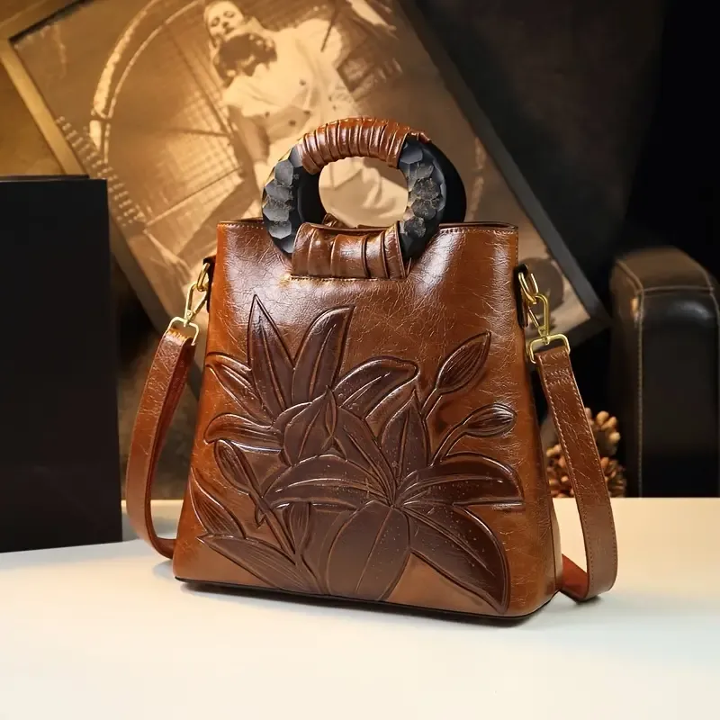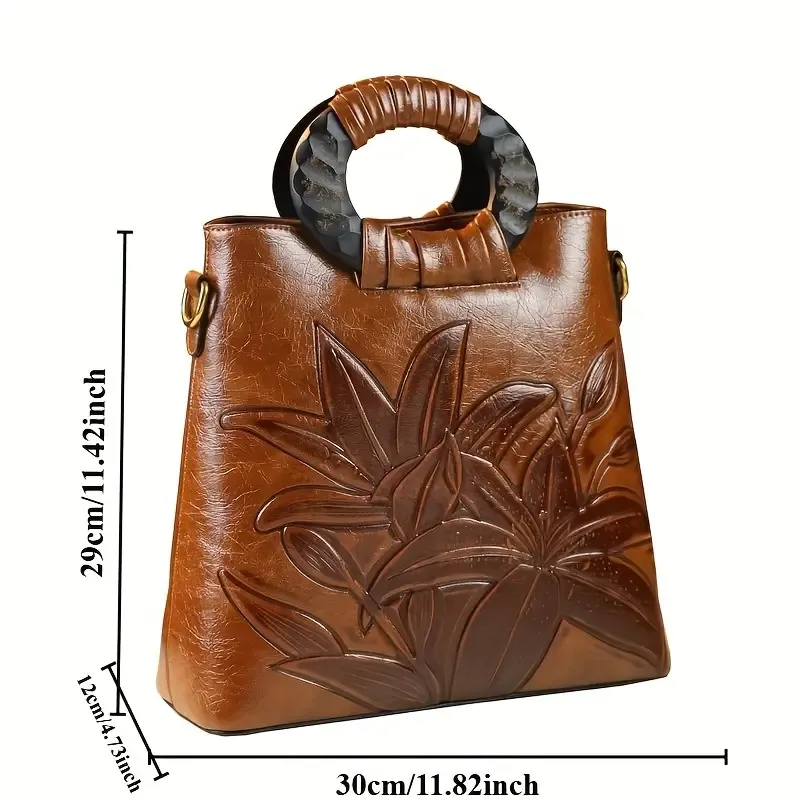 🔥For your beauty🔥Chic Vintage-Inspired Floral Faux Leather Handbag with Adjustable Strap - Spacious Crossbody & Shoulder Bag for Women