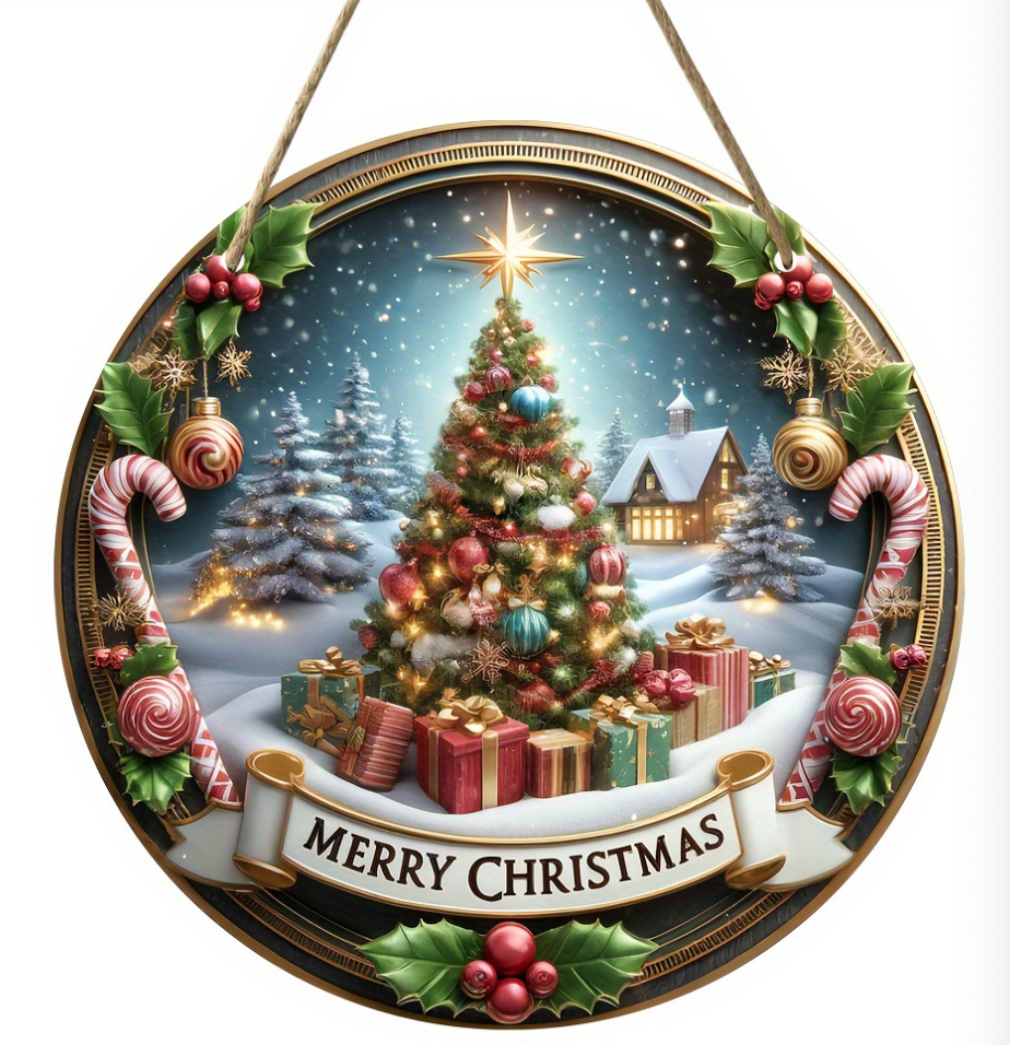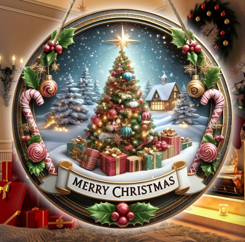 🔥Buy one get one free🔥Christmas Blessings Aluminum Wall Art - Round 2D Hanging Decor For Home, Bedroom, Living Room & Coffee Shops - Durable, Easy-To-Clean Aesthetic Gift