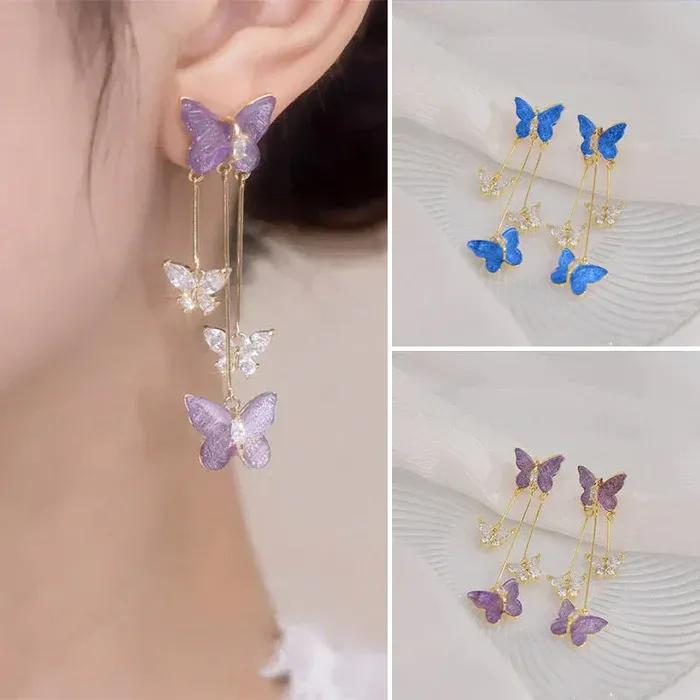 - 1 Pair x Crystal Butterfly Tassel Earrings