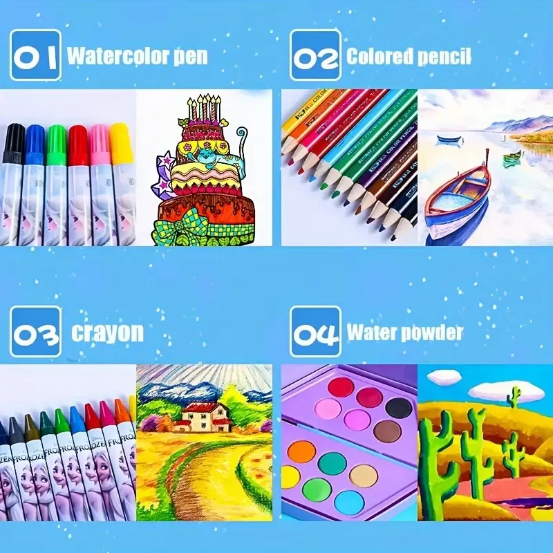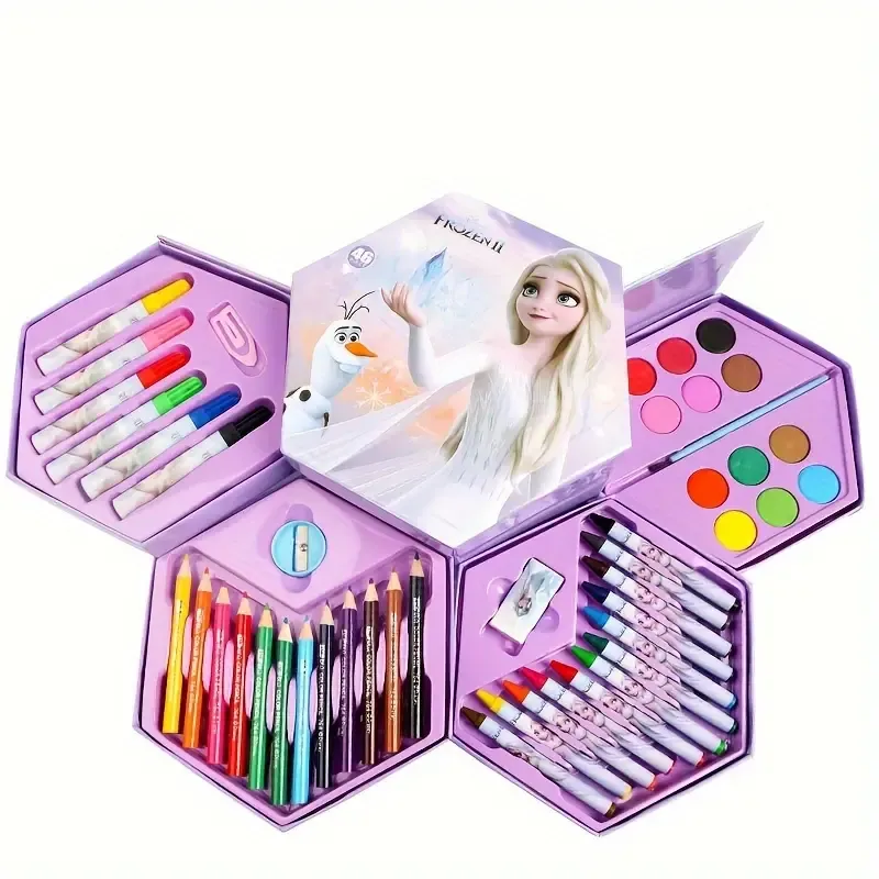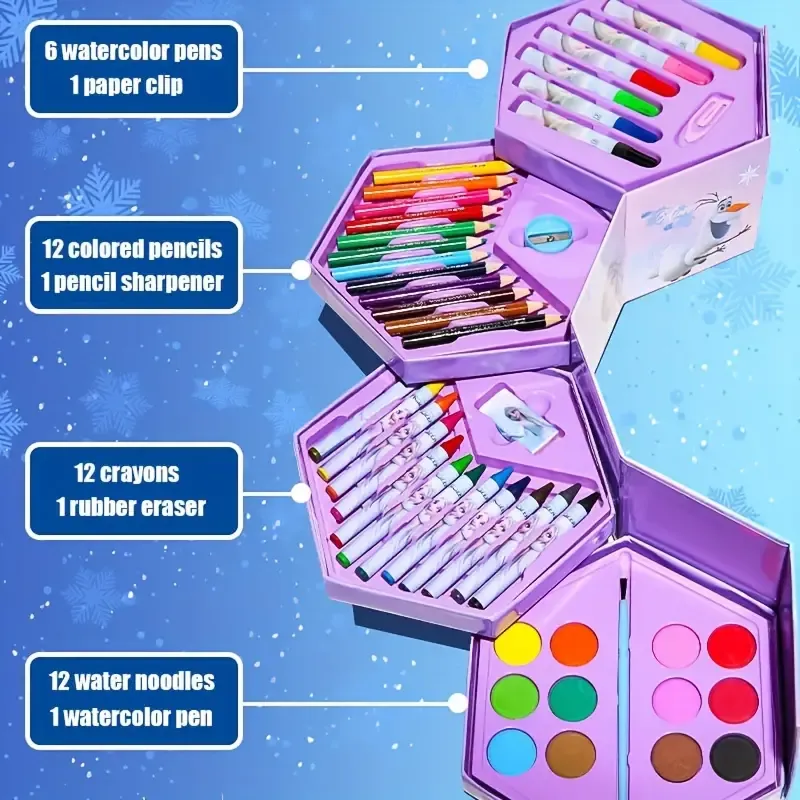 🔥For Your Child🔥Disney Frozen Elsa cute cartoon painting set multi-functional watercolor pen crayon gouache gift box Christmas Thanksgiving birthday gift