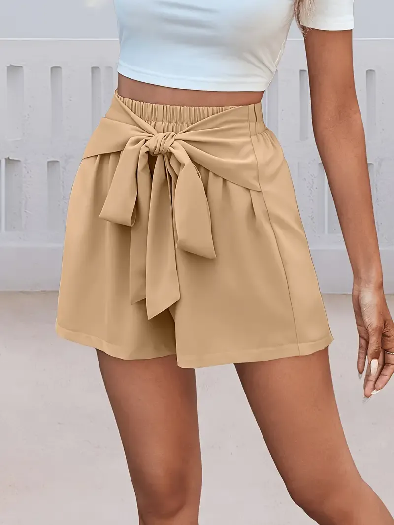 🔥🔥Hot Sale Promotion -High Waist Lace Up Solid Color Shorts, Loose Fit Casual Shorts for Spring & Summer, Women's Clothing