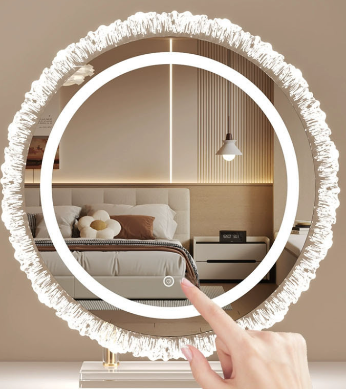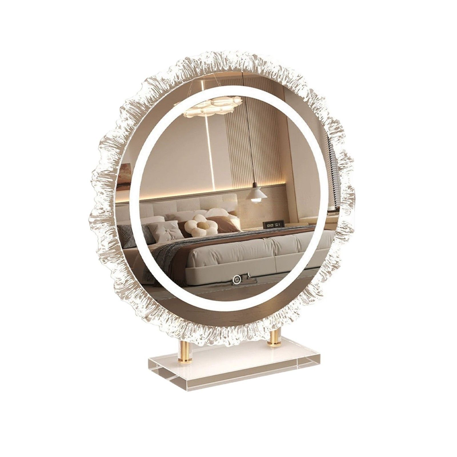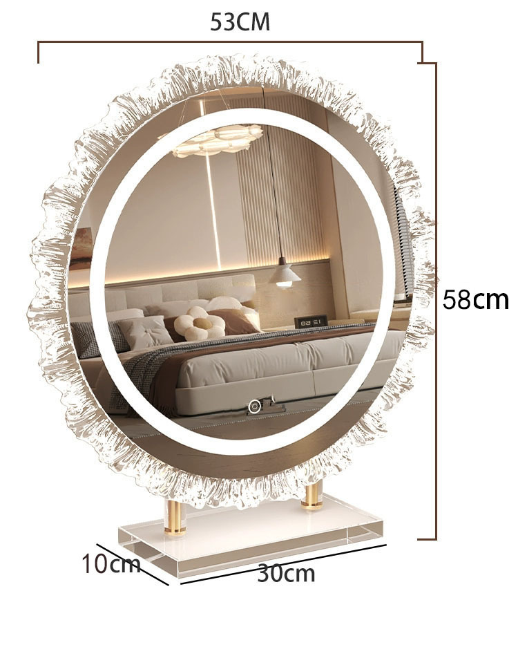 🔥2025 HOT SALE -50%🔥Sunflower makeup mirror crystal transparent base glacier lace three-color light-changing positive mirror rotatable dressing mirror