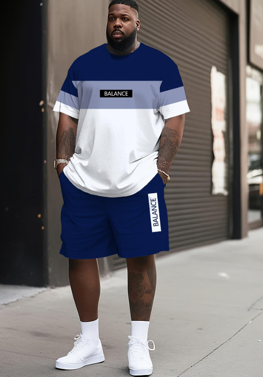 Summer men's 3d printing casual hip-hop sports loose round neck short-sleeved shorts suit