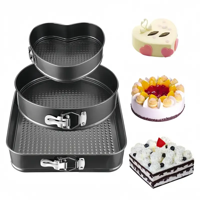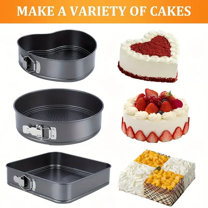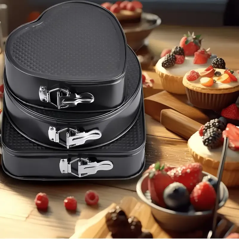 💥Limited time discount of 50%3PCS Non-Stick Baking Pans Set - Carbon Steel Cake Pans with Removable Bottoms for Cheesecake & Bread, Manual Round & Heart-Shaped Leakproof Bakeware for Mother's Day, Professional & Home Baking