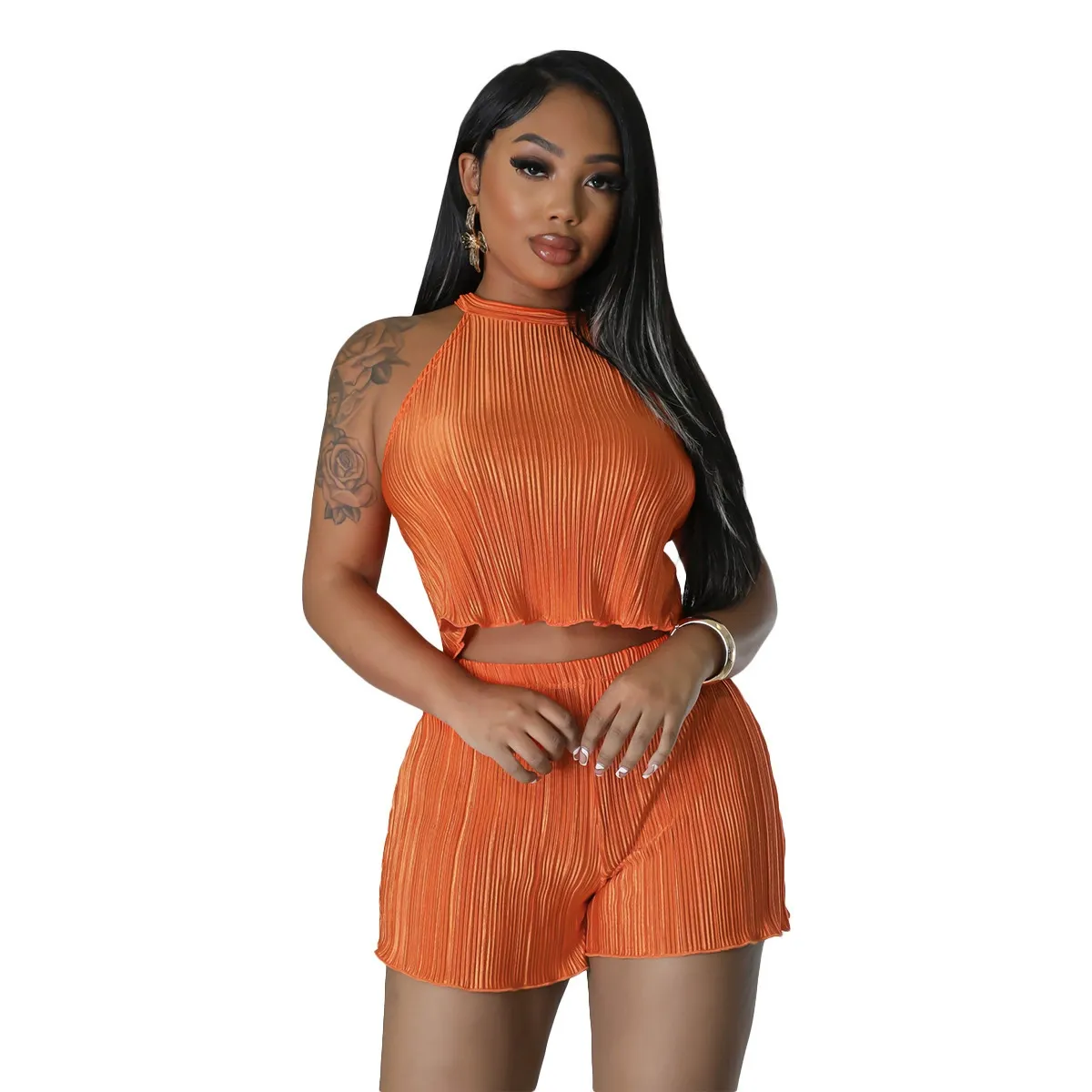 🔥2025 HOT SALE -50%🔥Summer leisure fashion pleated sleeveless vest shorts two-piece set