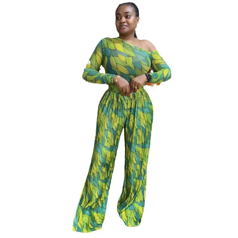 🔥2025 HOT SALE -50%🔥2025 Spring New Printed Slant Collar Long Sleeve Top Wide Leg Pants Pleated Suit