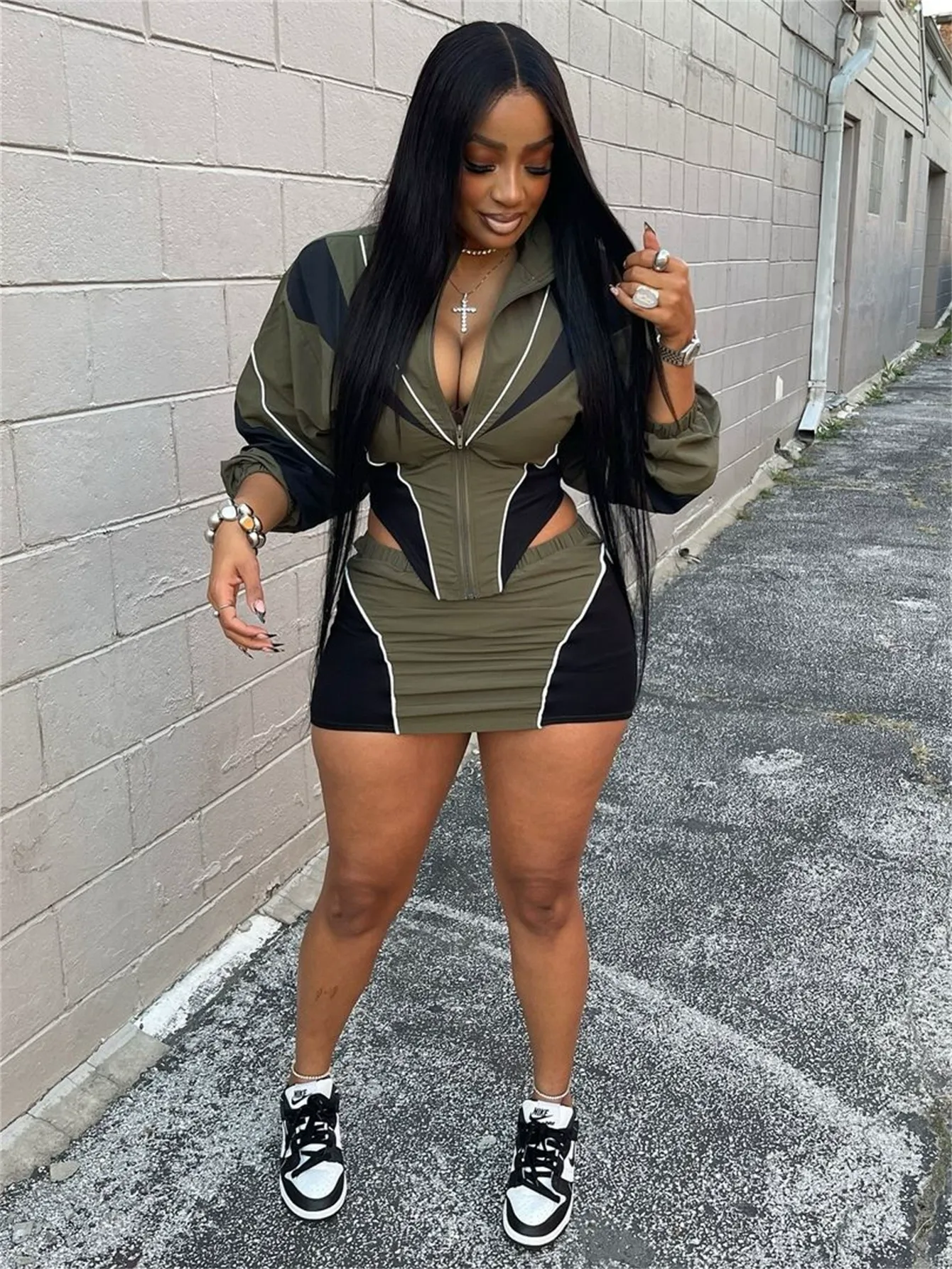 🔥2025 HOT SALE -50%🔥New European and American sexy sports style loose casual contrast color long sleeve jacket short skirt suit for women