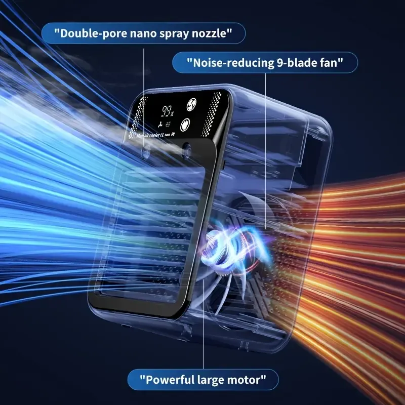 2025 New Smart Water-Cooled Fan with Ice Cooling, Portable Desktop Spray Humidifier, Rechargeable Or USB Powered, 2-Speed Adjustment, Battery Capacity: 3000Mah, Square Shape, 36V Or Below, No Energy Efficiency Rating,