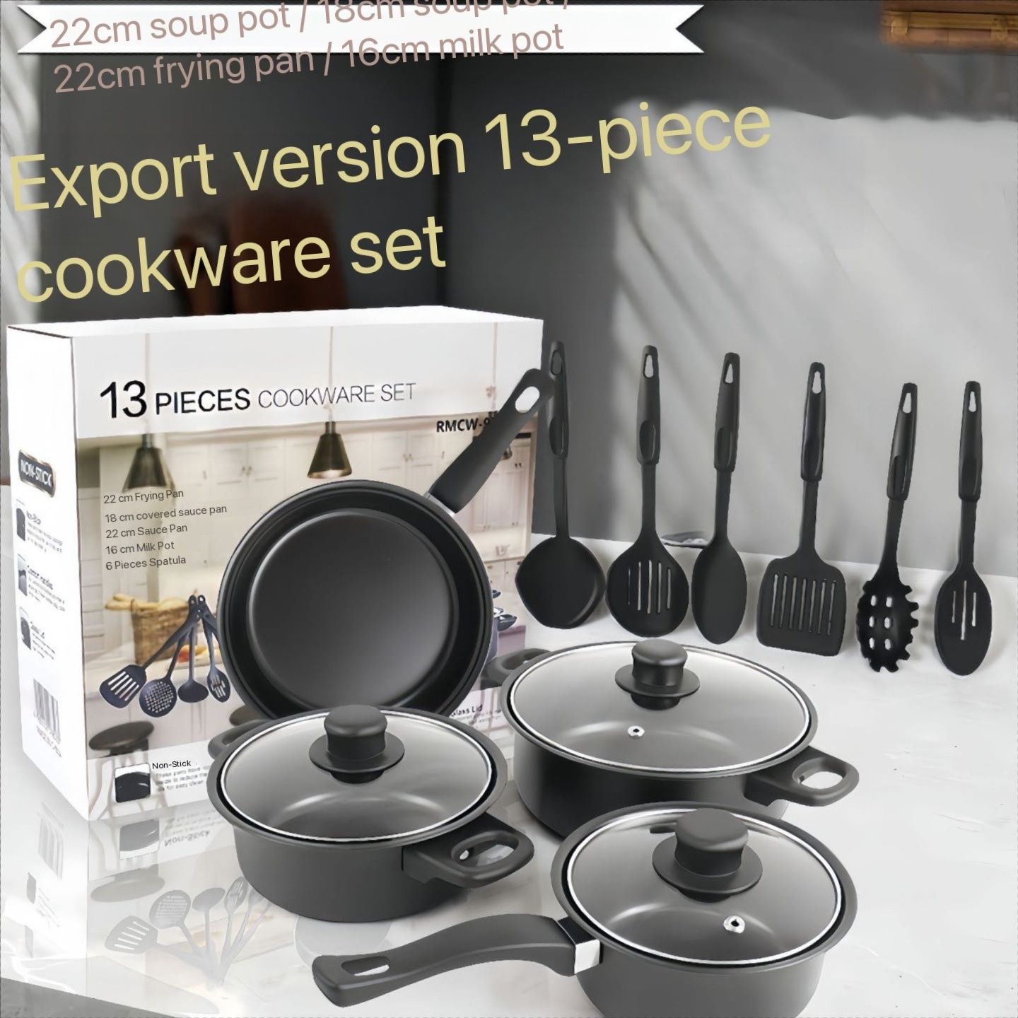 Hot-selling 13-piece cookware set, spatula, non-stick saucepan, milk pan, frying pan, cross-border Maifan stone pot multi-piece cookware set