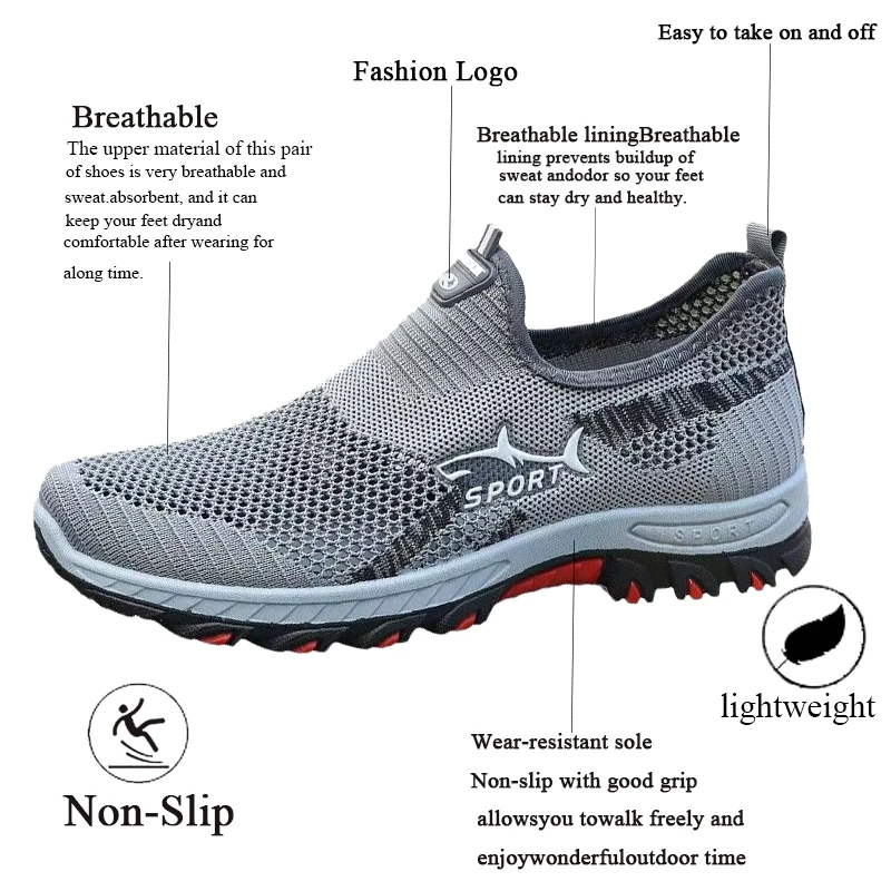 Ultra-breathable mesh upper with slip-on design and anti-slip outsole. Light and comfy for daily errands.