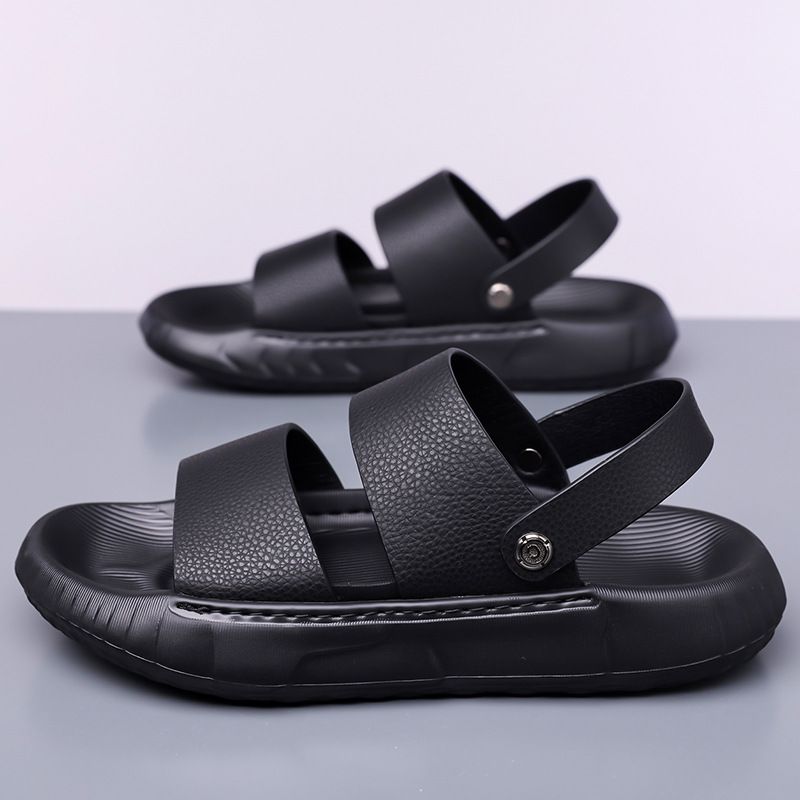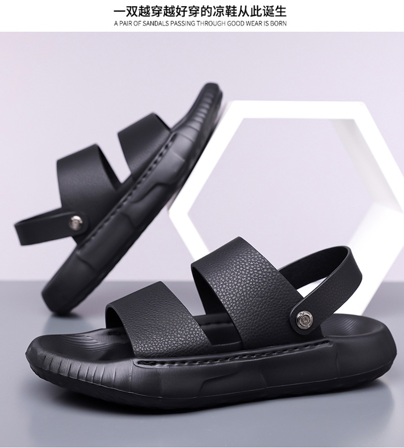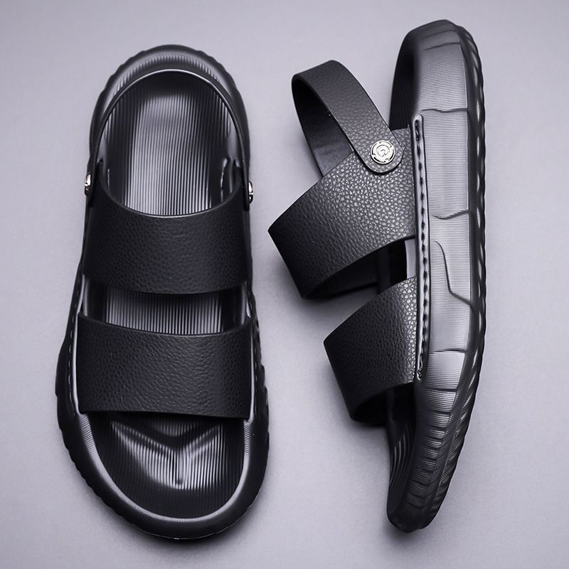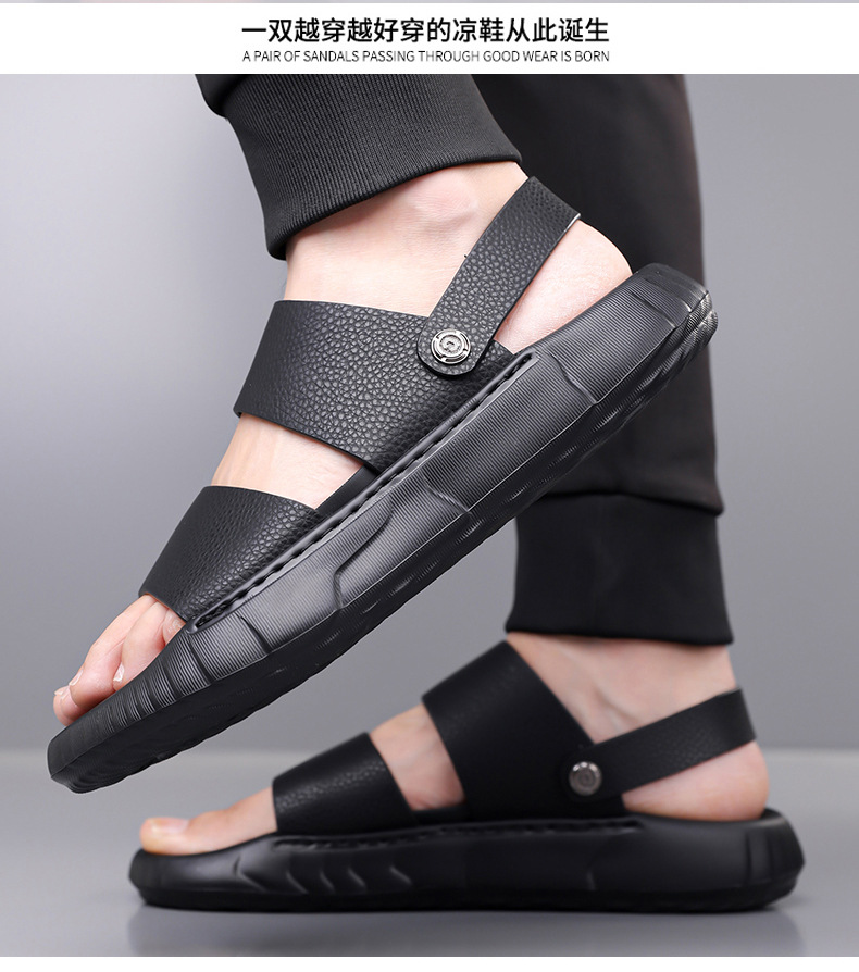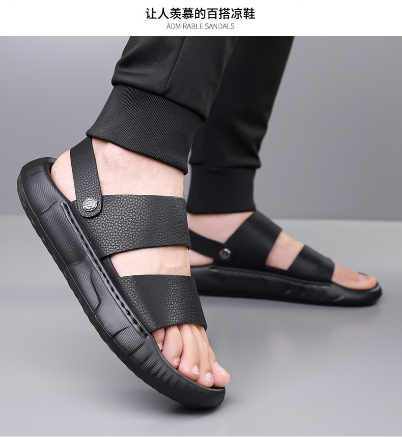 Men's trendy new style top-grain cowhide slippers, soft-soled, genuine leather beach shoes, thick-soled sandals for outdoor wear