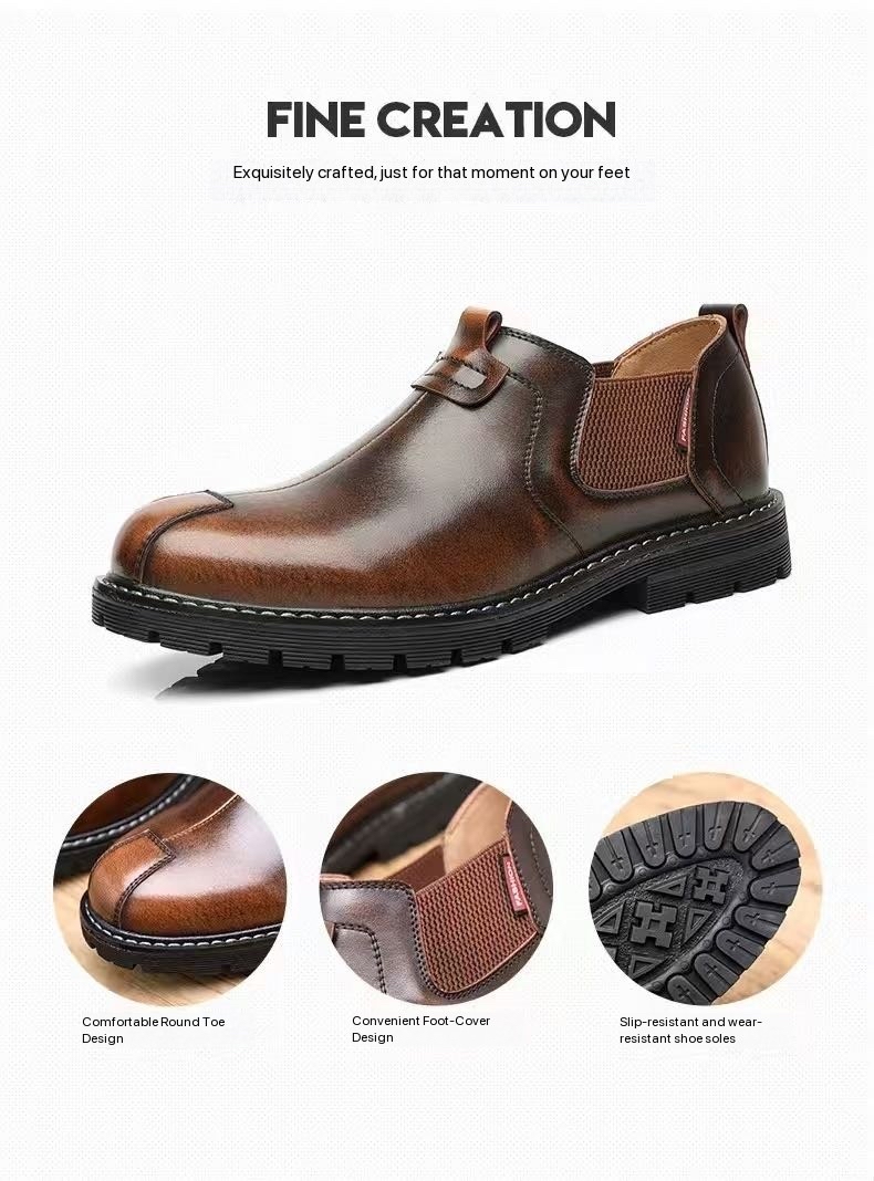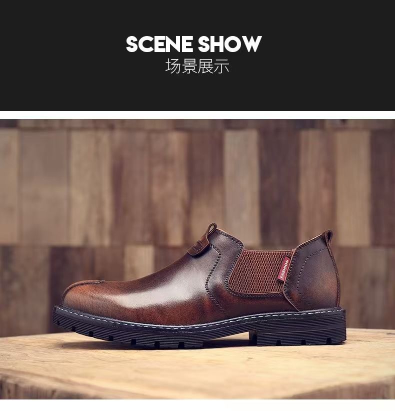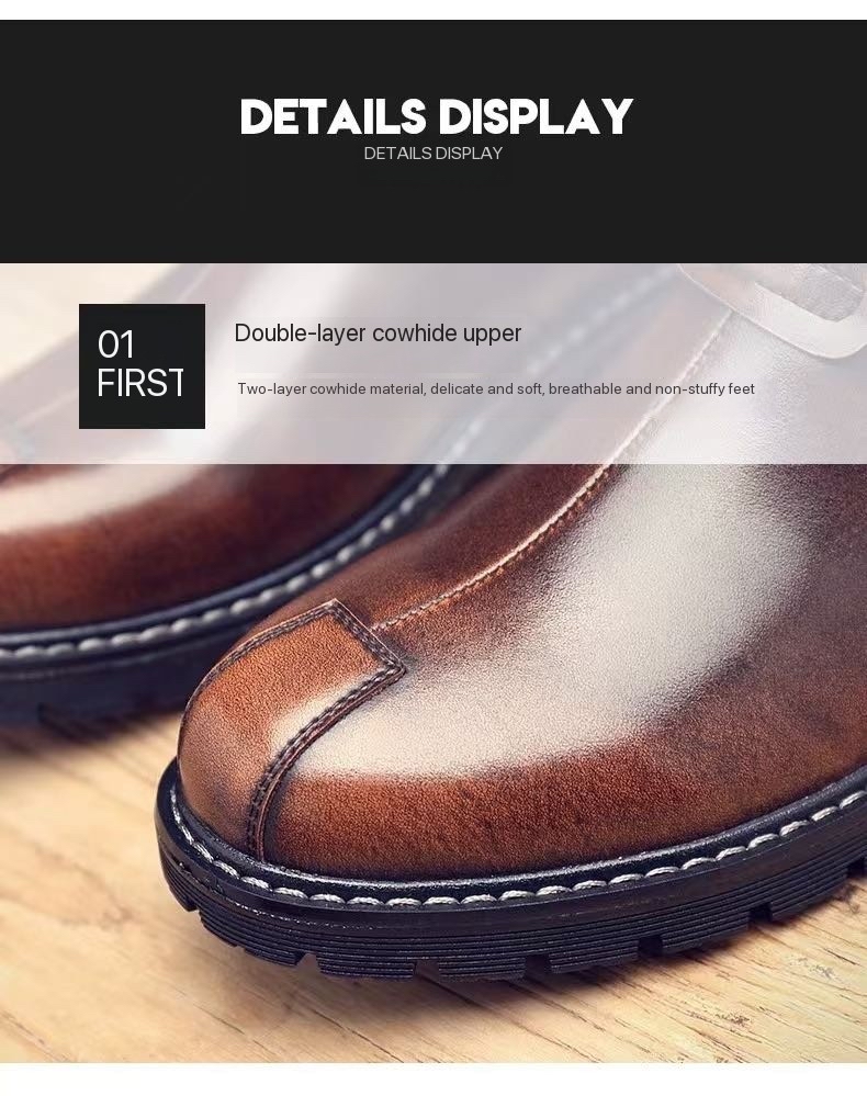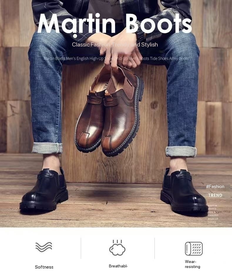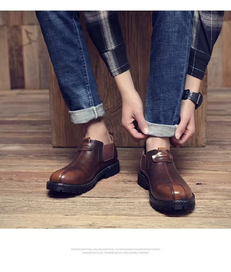 New men's casual ankle boots, British style, trendy genuine leather, fashionable low-top men's boots, Korean style.