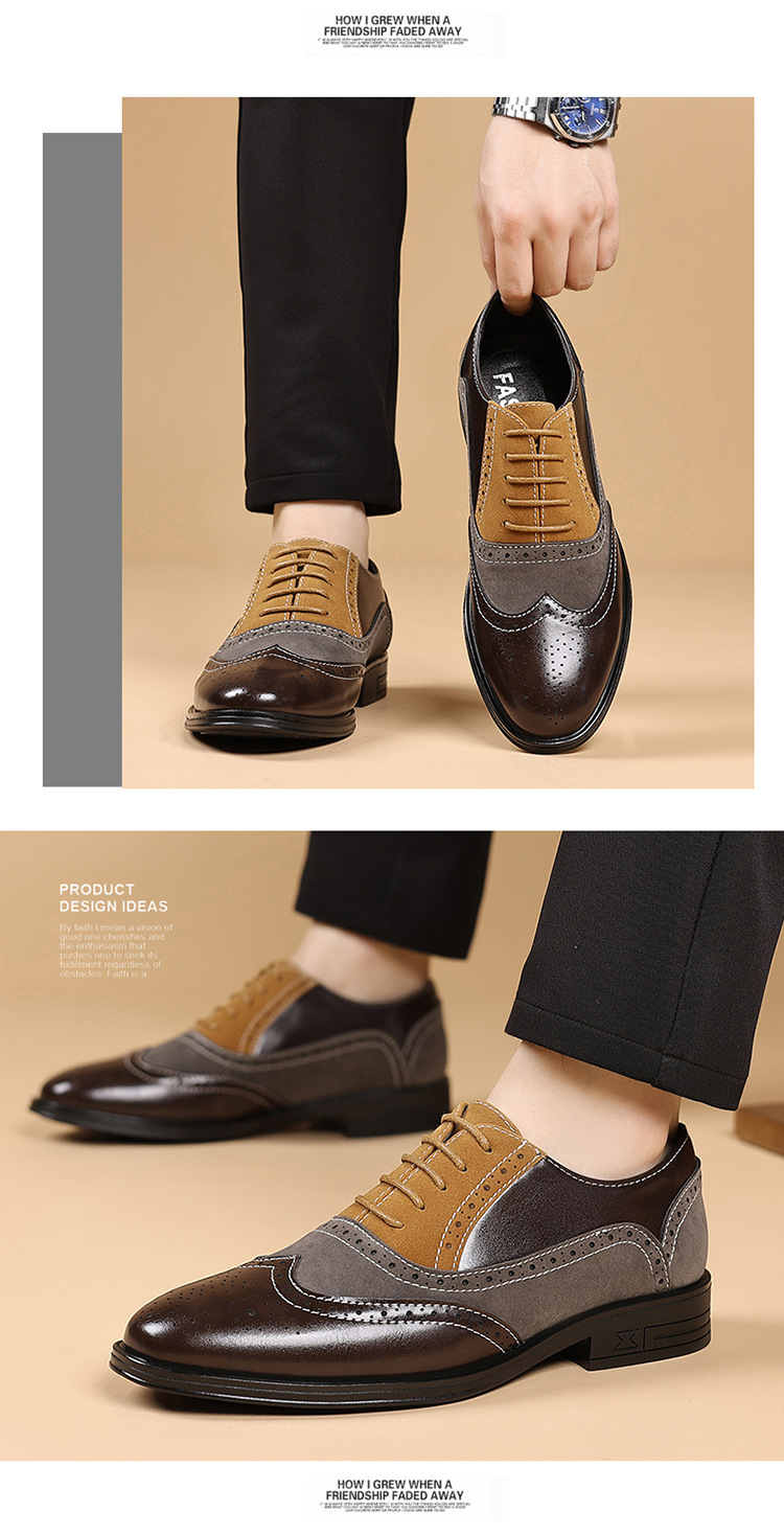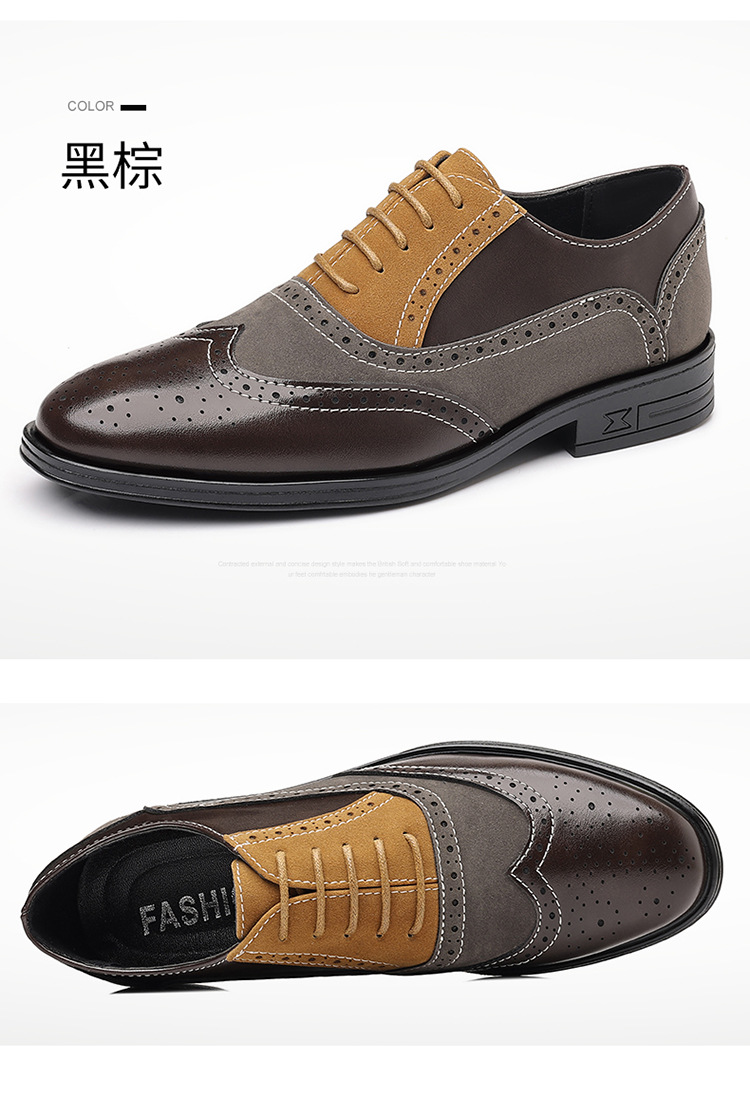 Plus-size formal men's shoes, brogue detailing, trendy men's business casual leather shoes, breathable new style, British color blocking.