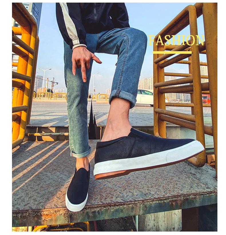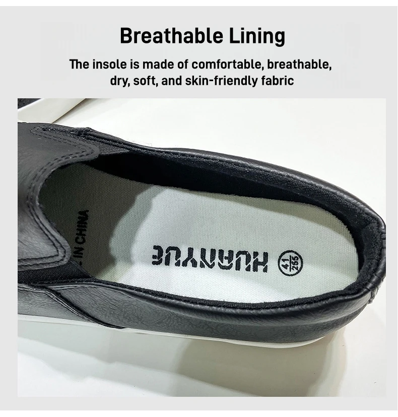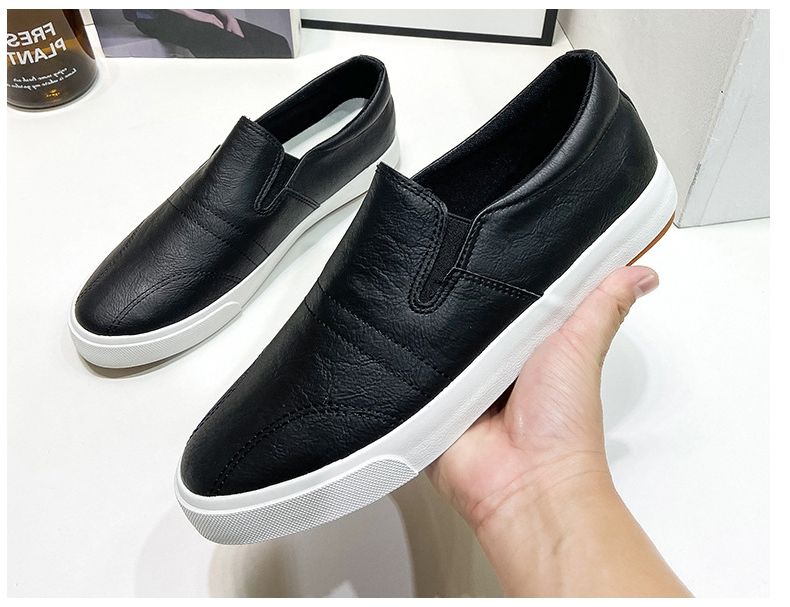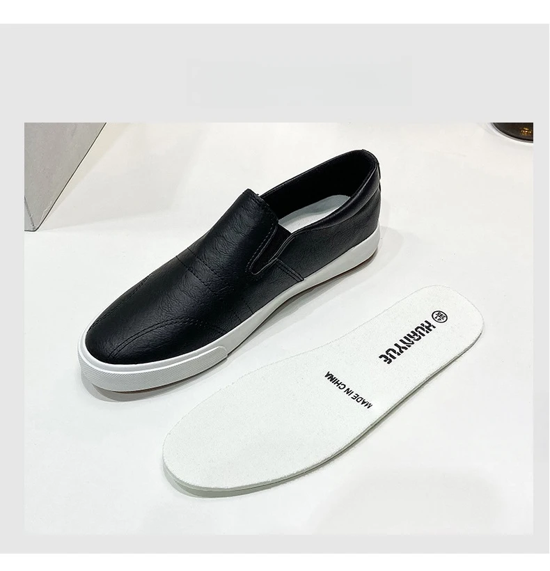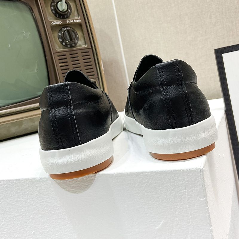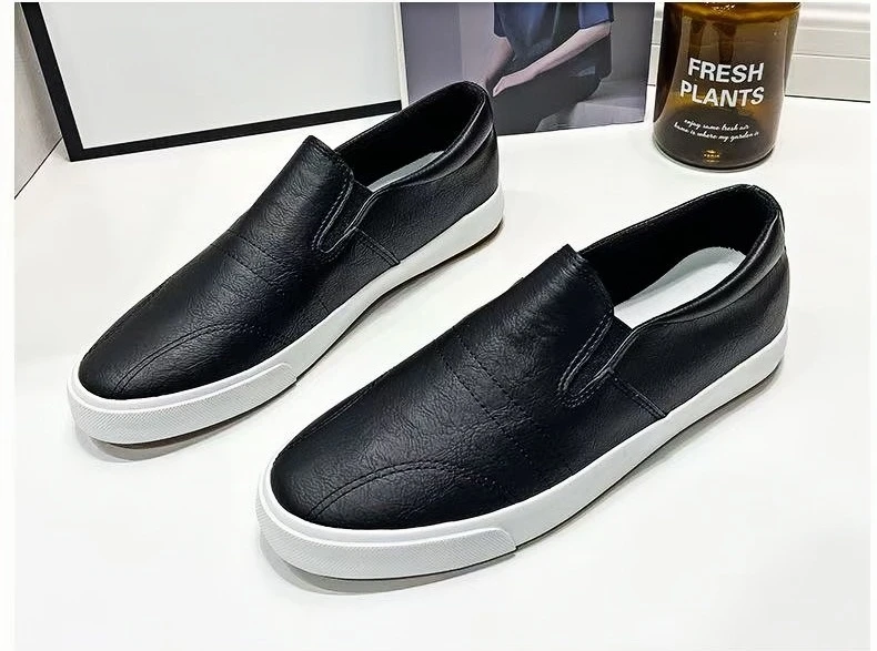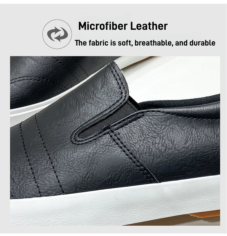 Slip-on casual men's shoes, low-top, easy-fit leather shoes, lightweight rubber shoes for all seasons, men's flat shoes.