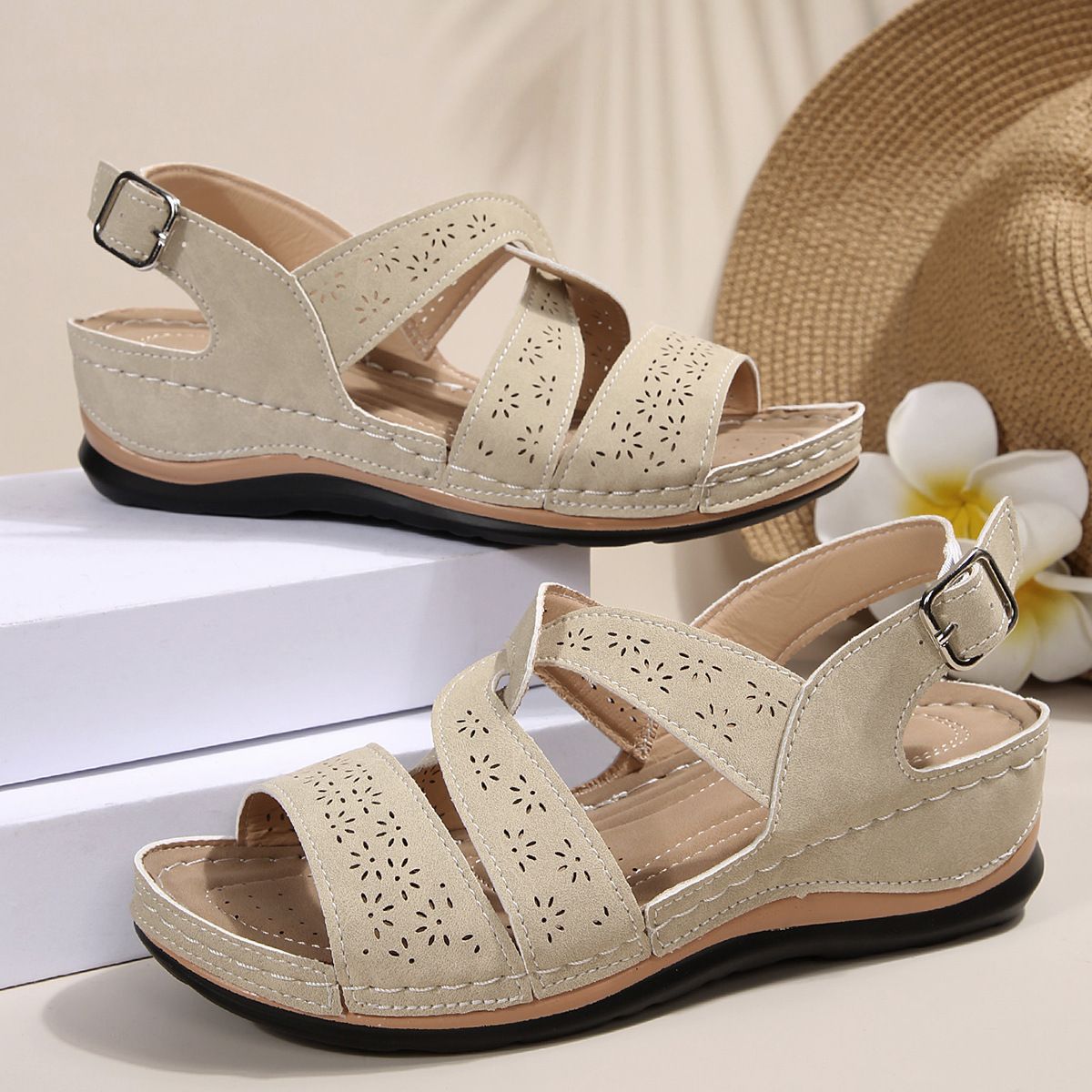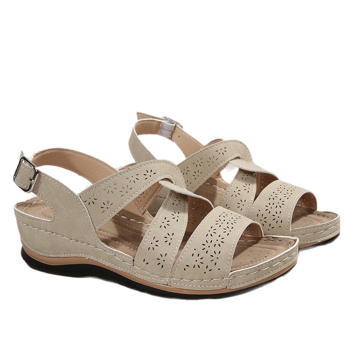 🔥2025 HOT SALE -50%🔥rainy season new fashion fish mouth buckle wedge sandals women's casual large size women's Roman sandals women