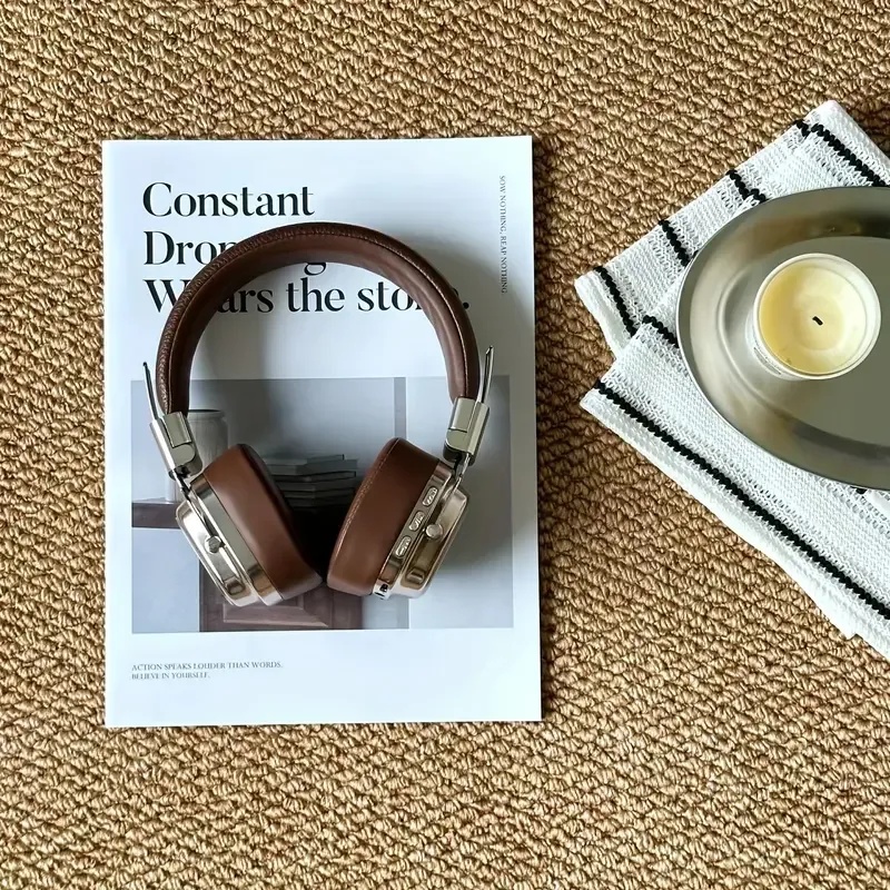 Wireless 5, 4 Headphones, Vintage-Style, Newly Upgraded, Long Battery Life, Ultra-Lightweight, Comfortable to Wear, Push Button Control,