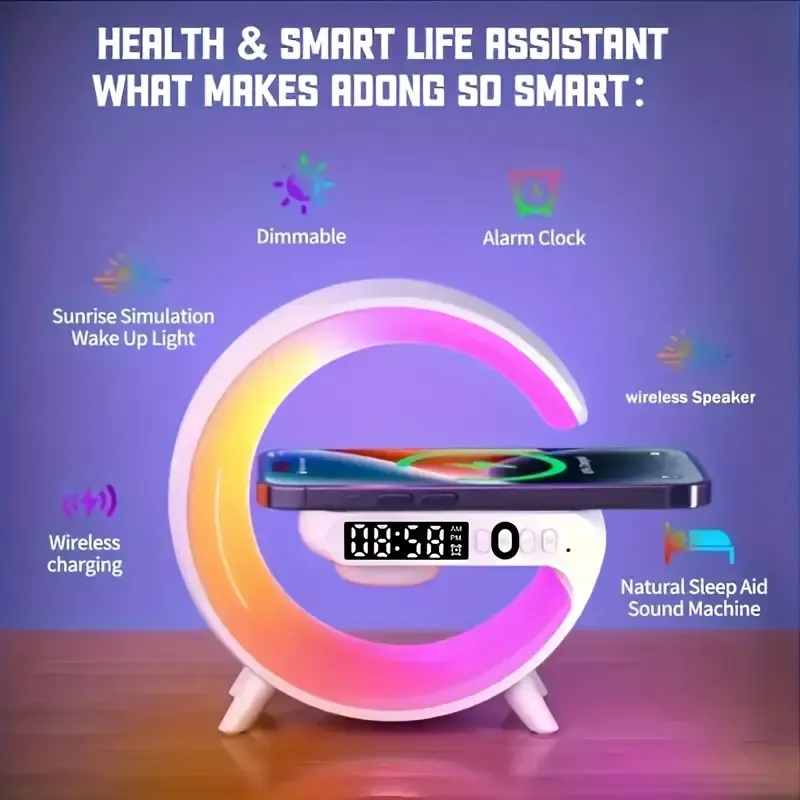 Wireless Portable Speaker with RGB Lights, Smart Bar Rhythm Lighting, Sunrise Alarm, Bedroom Wake-Up Light, Dimmable Table Lamp, Mono Audio, USB-C Charging, Type-C Port, 5-10W Power, with 300mAh Lithium Polymer Battery